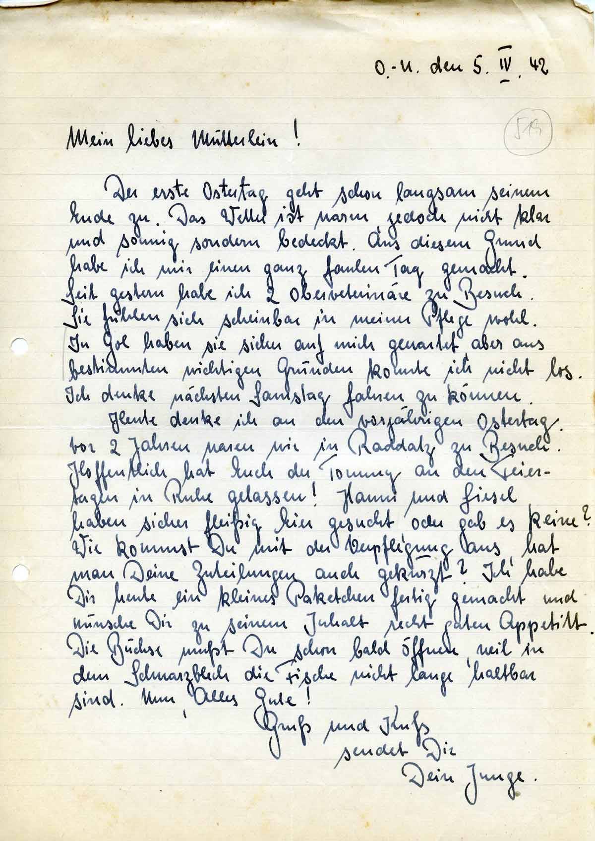 Rudolf Schmitz an Mutter Anna, 5. April 1942