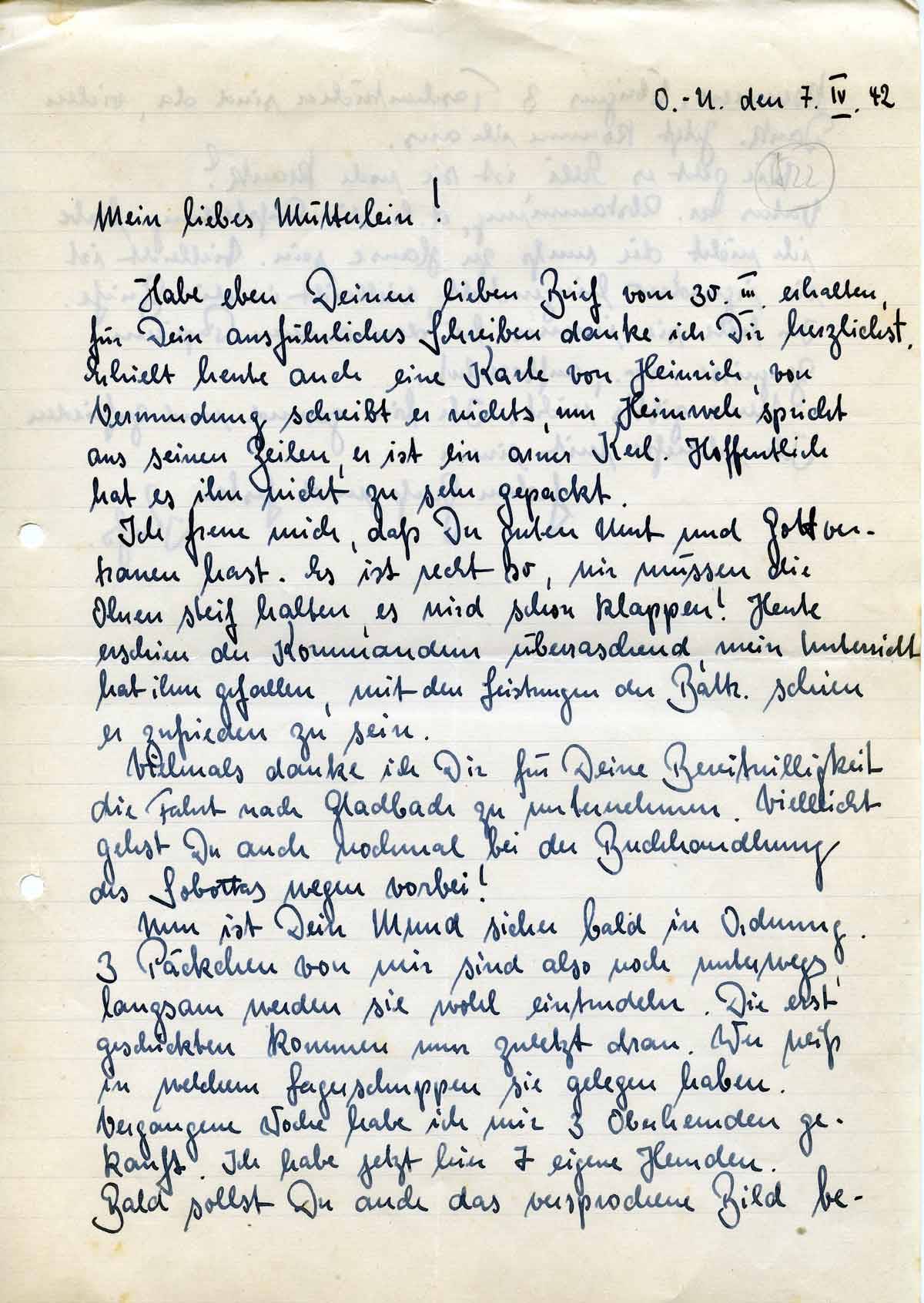 Rudolf Schmitz an Mutter Anna, 7. April 1942