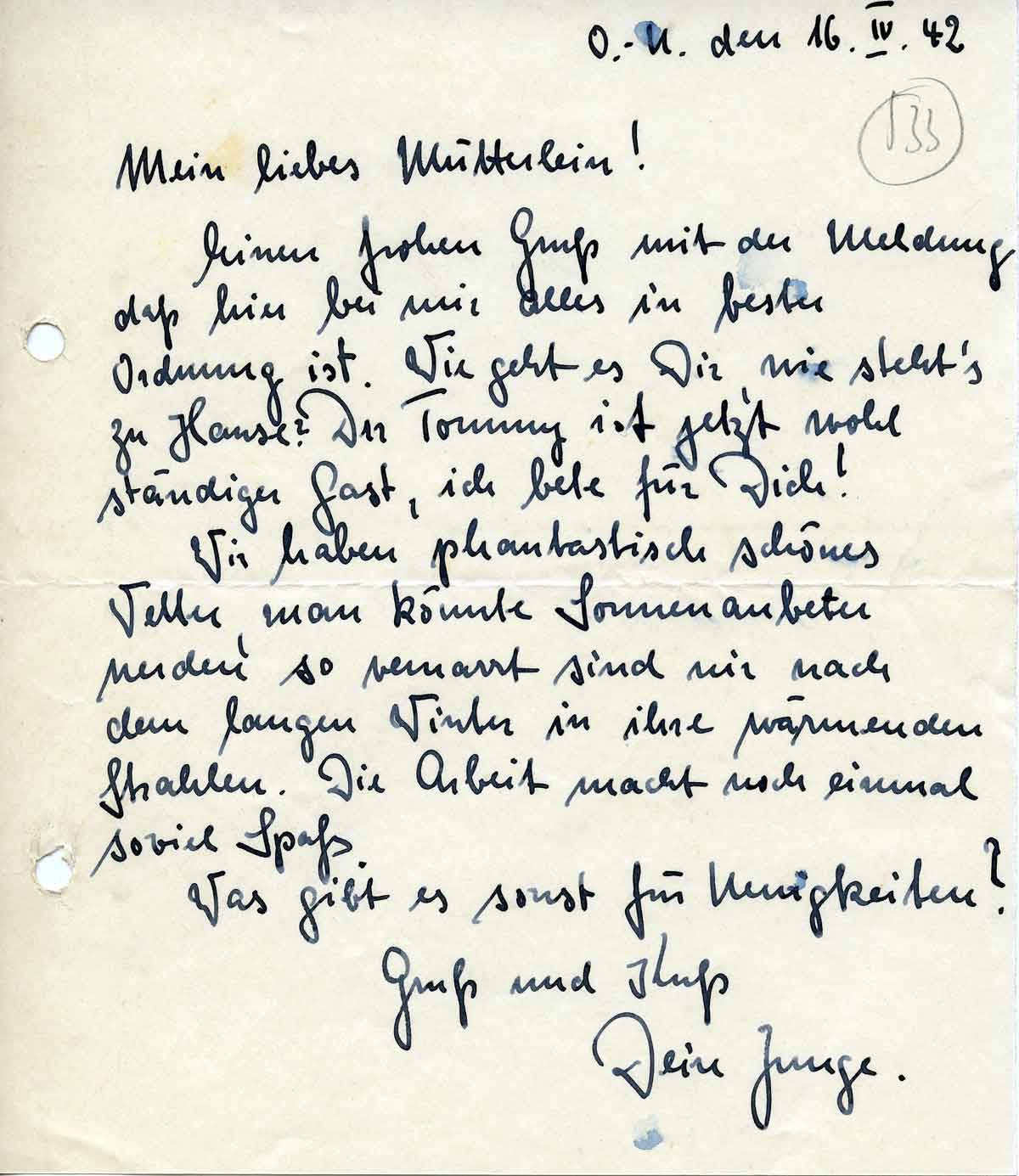 Rudolf Schmitz an Mutter Anna, 16. April 1942