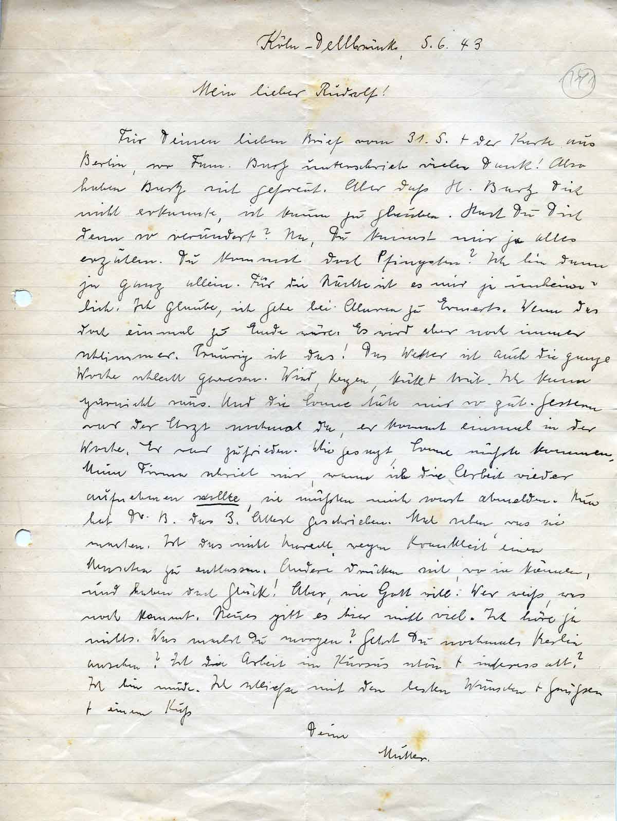 Anna Schmitz an ihren Sohn Rudolf, 5. Juni 1943
