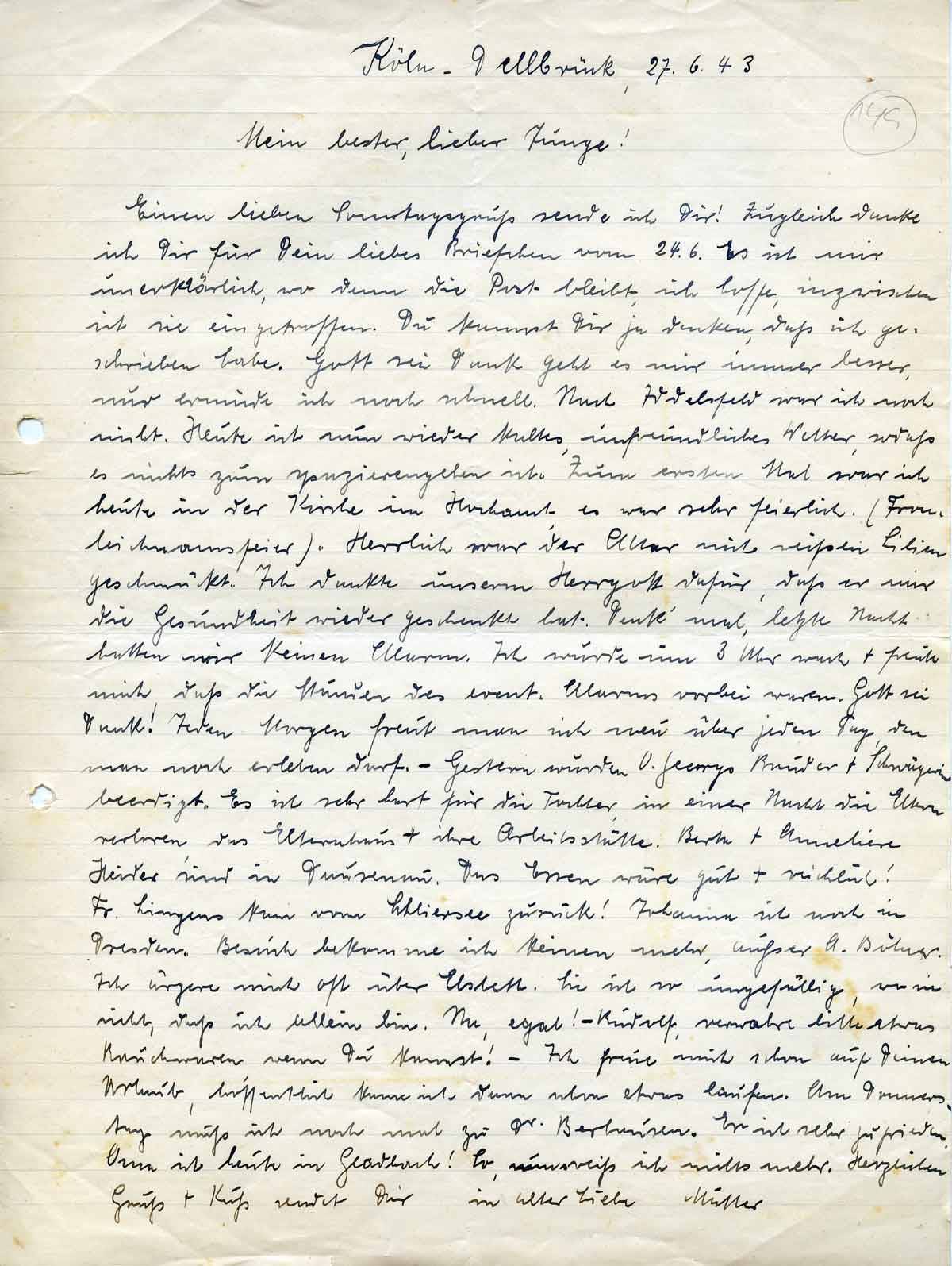 Anna Schmitz an ihren Sohn Rudolf, 27. Juni 1943