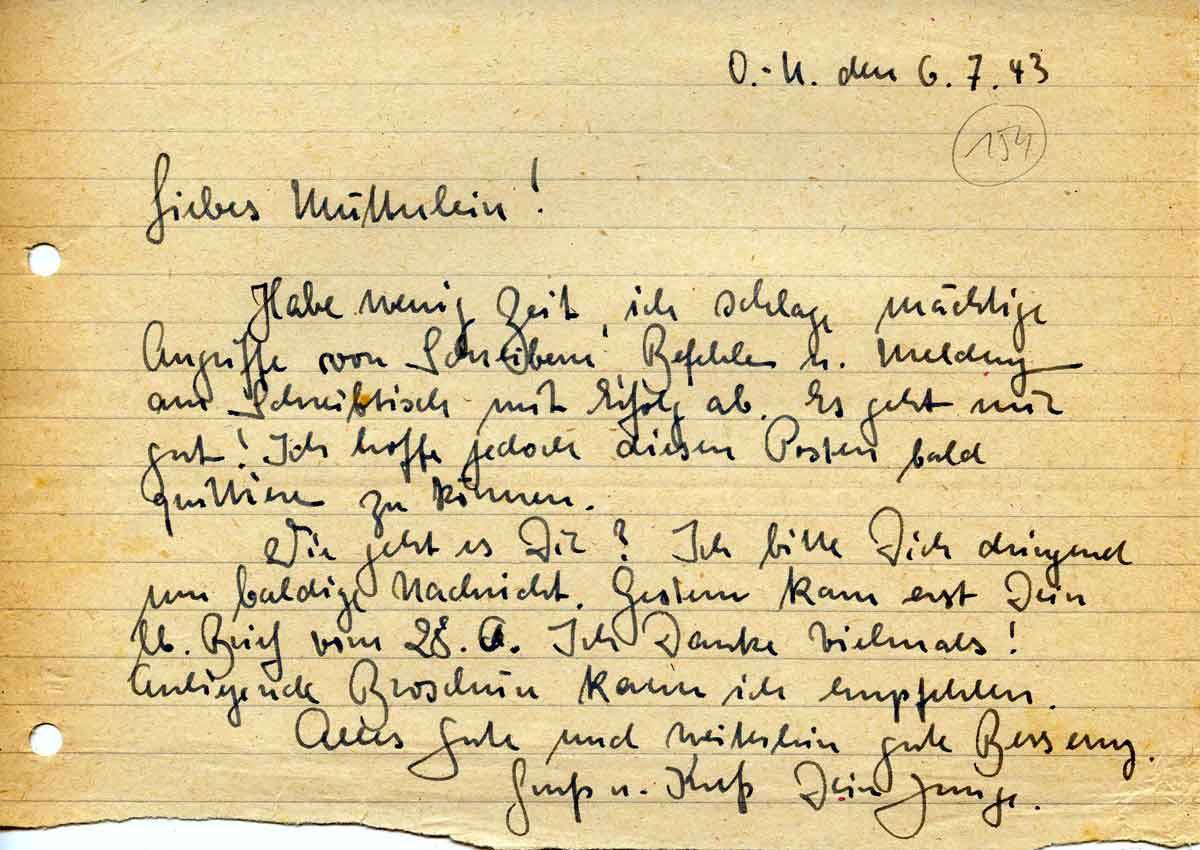 Rudolf Schmitz an Mutter Anna, 6. Juli 1943