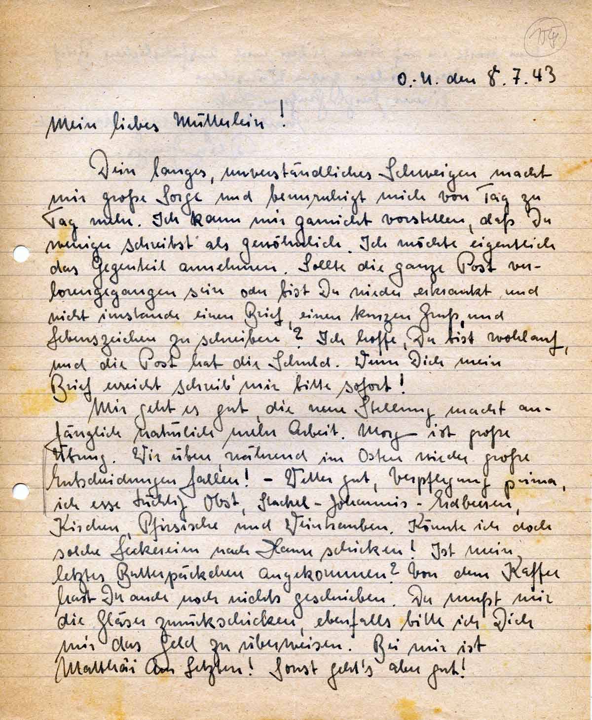Rudolf Schmitz an Mutter Anna, 8. Juli 1943