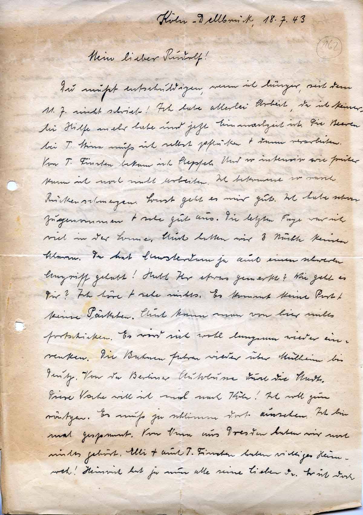 Anna Schmitz an ihren Sohn Rudolf, 18. Juli 1943