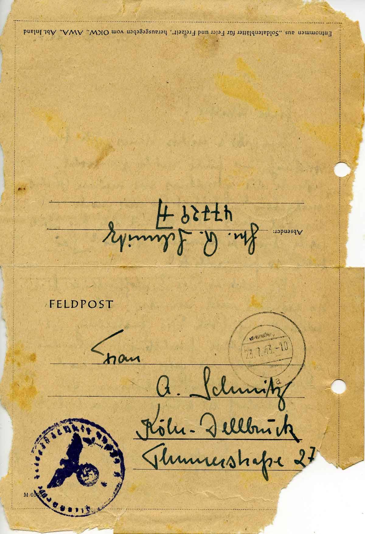 Rudolf Schmitz an Mutter Anna, 22. Juli 1943