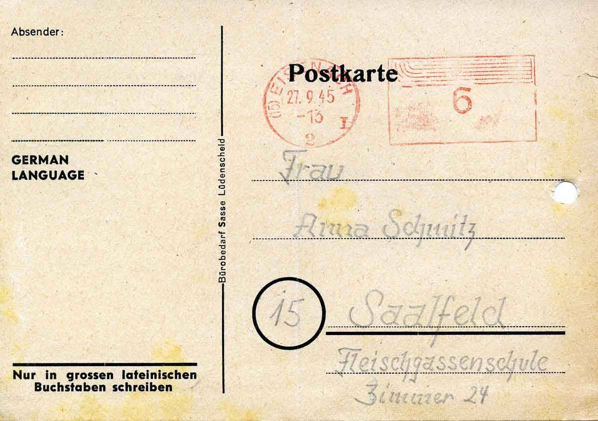 Rudolf Schmitz an Mutter Anna, 24. September 1945
