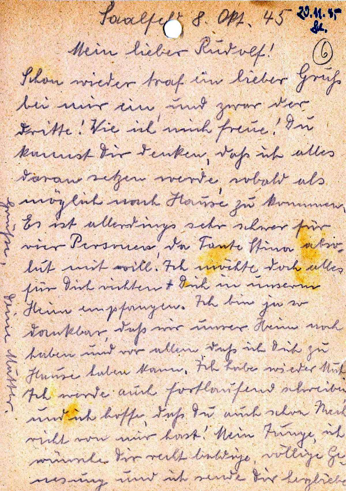 Anna, Schmitz an Sohn Rudolf, 8. Oktober 1945