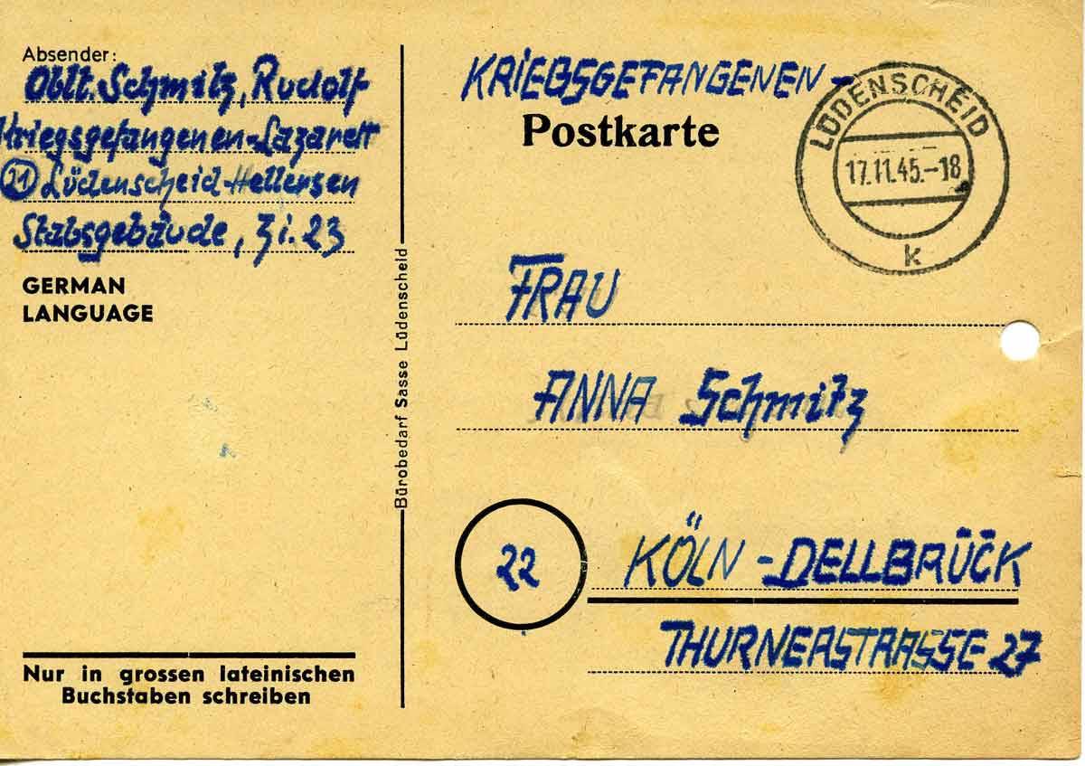 Rudolf Schmitz an Mutter Anna, 16. November 1945