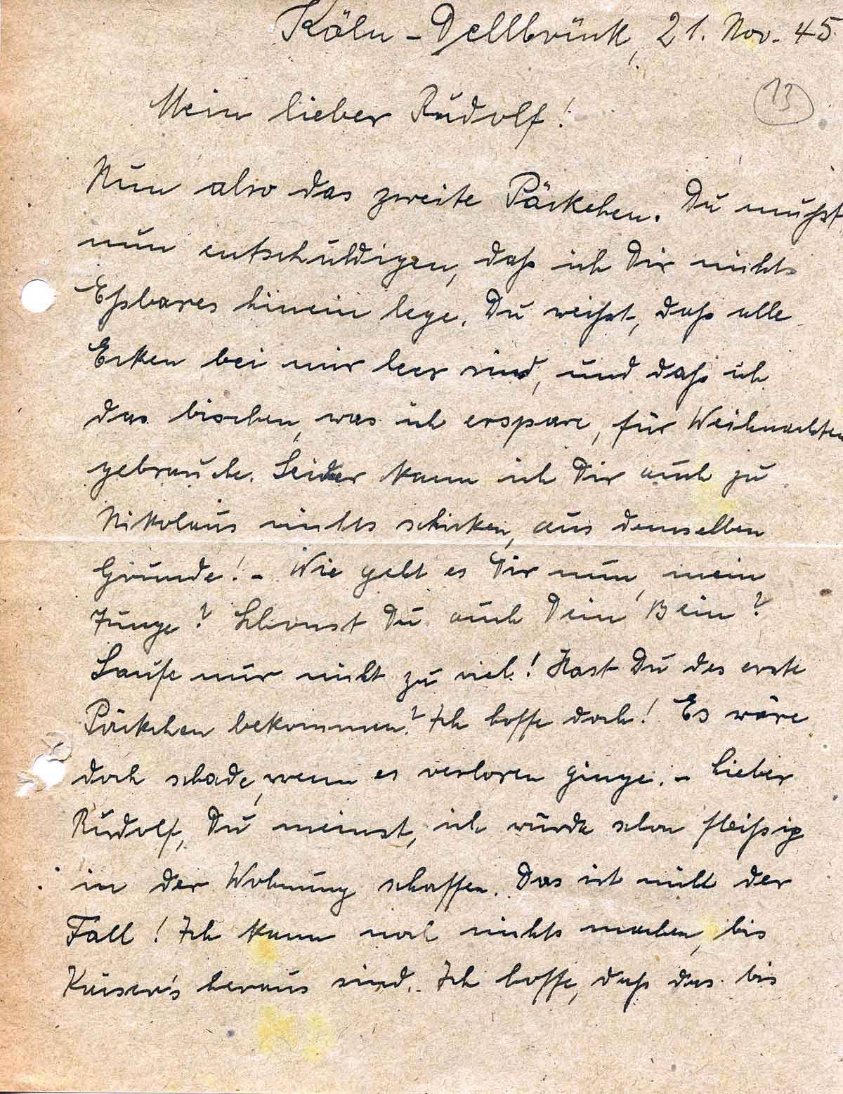 Anna Schmitz an ihren Sohn Rudolf, 21. November 1945