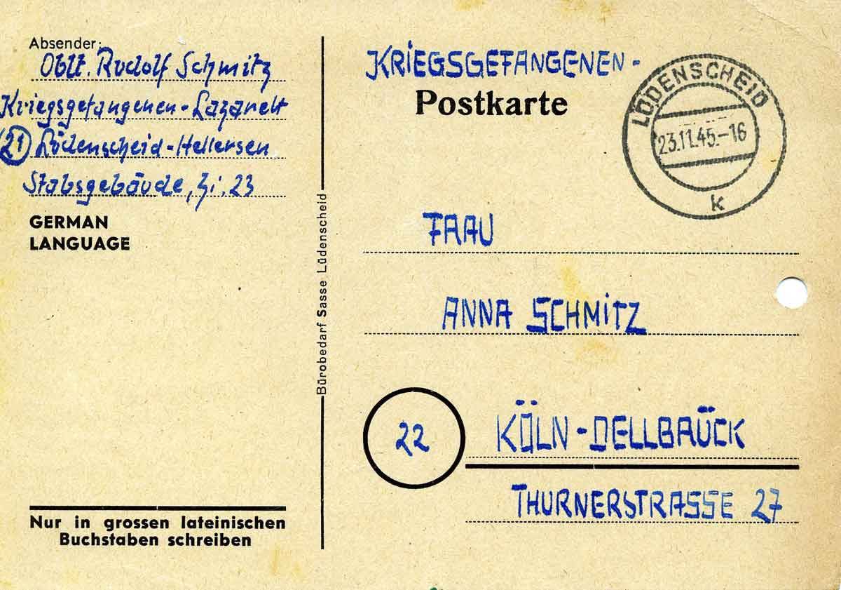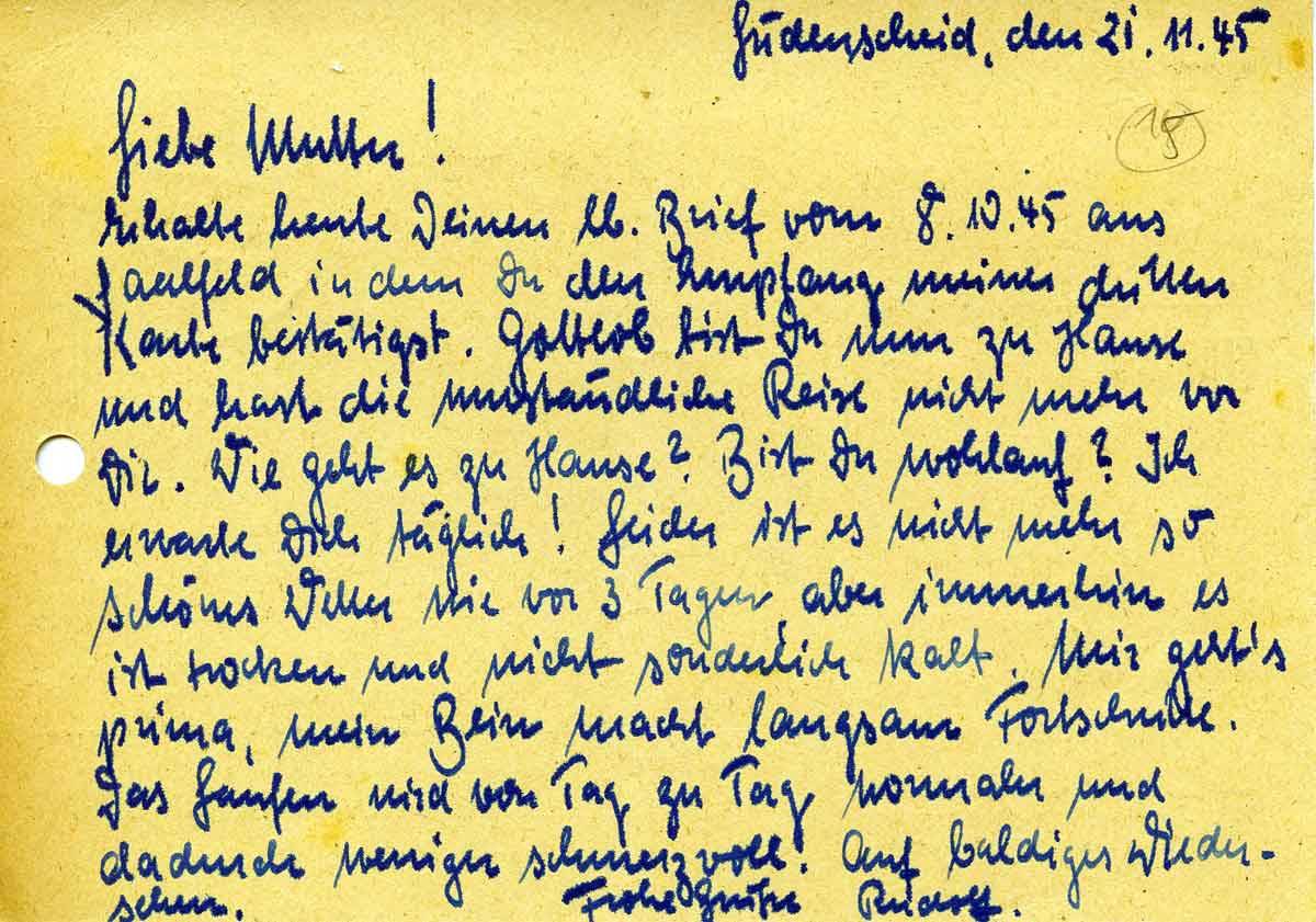 Rudolf Schmitz an Mutter Anna, 21. November 1945