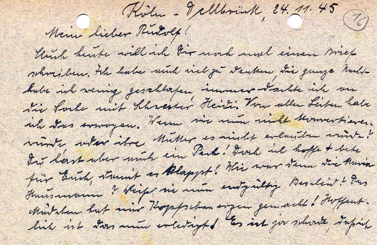 Anna Schmitz an ihren Sohn Rudolf, 24. November 1945