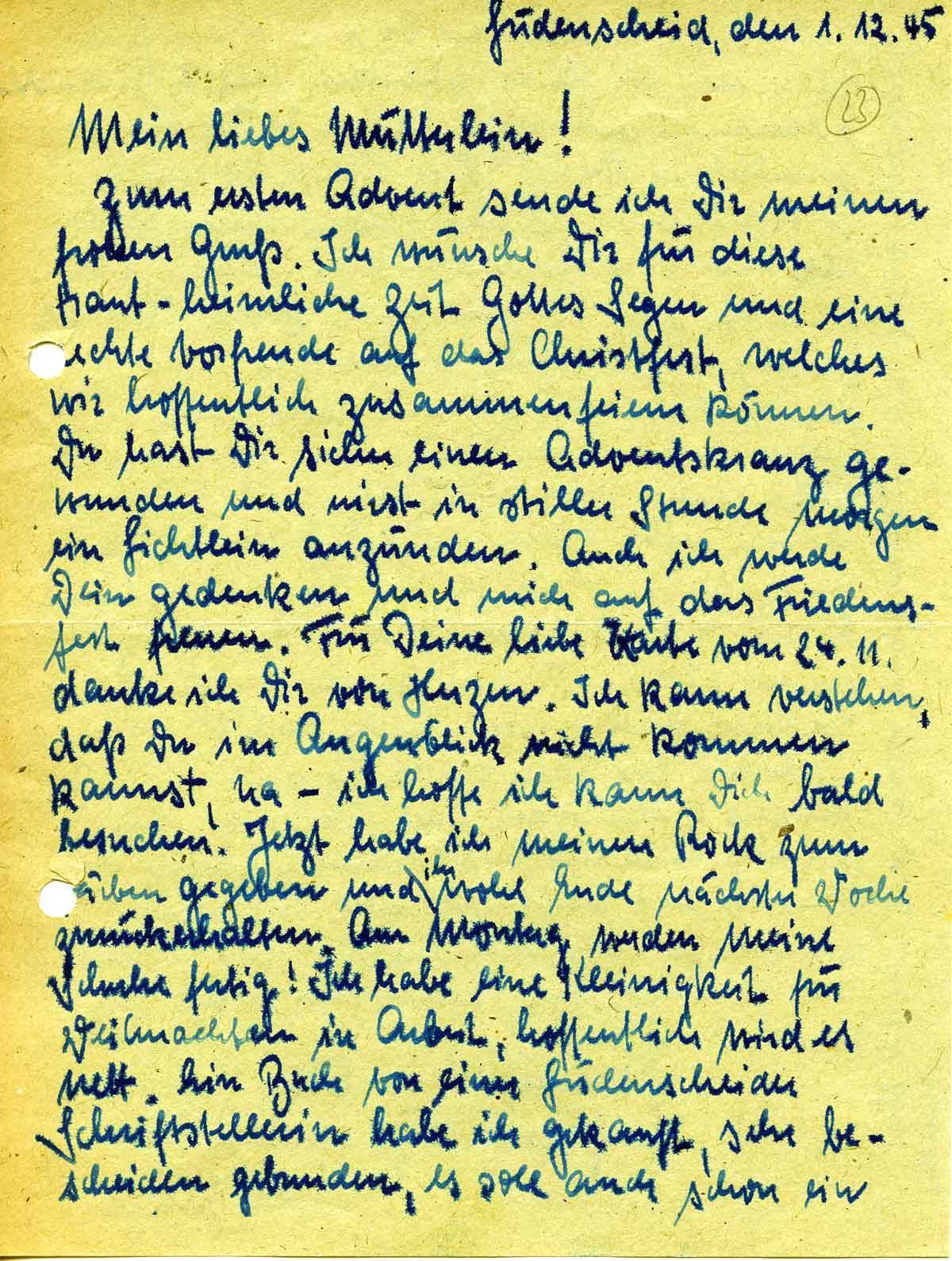 Rudolf Schmitz an Mutter Anna, 1. Dezember 1945