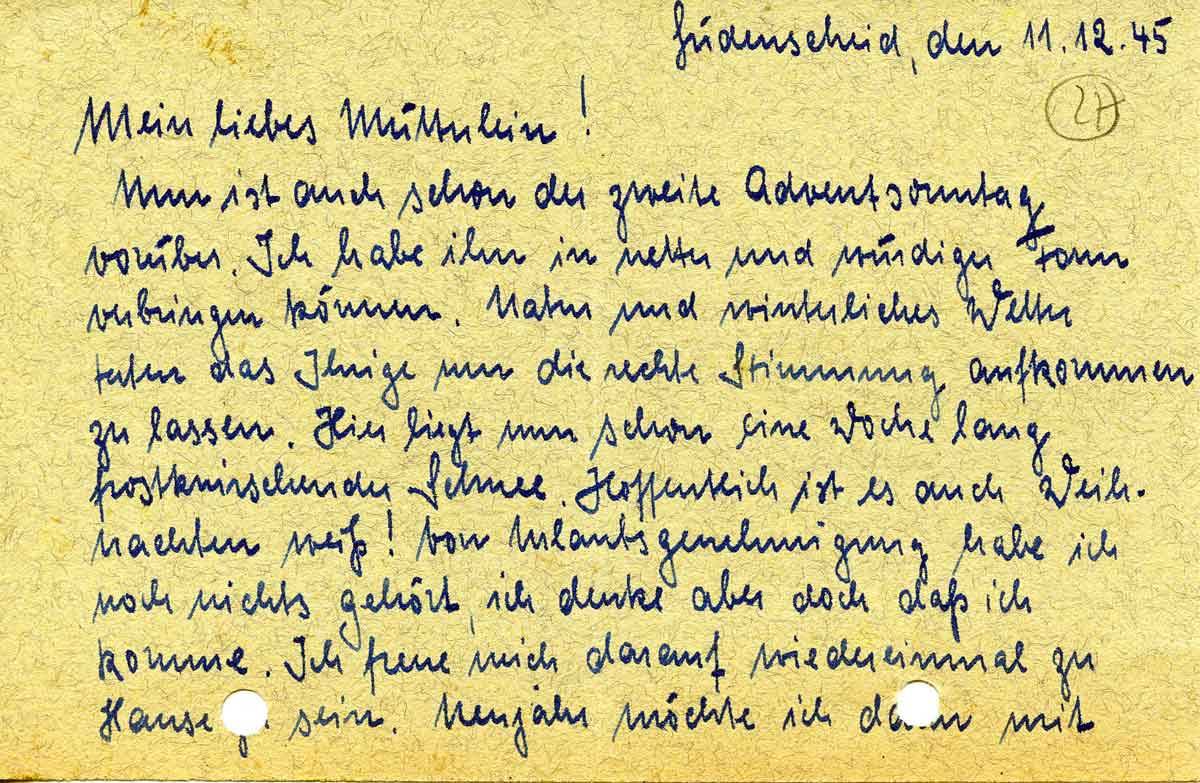 Rudolf Schmitz an Mutter Anna, 11. Dezember 1945