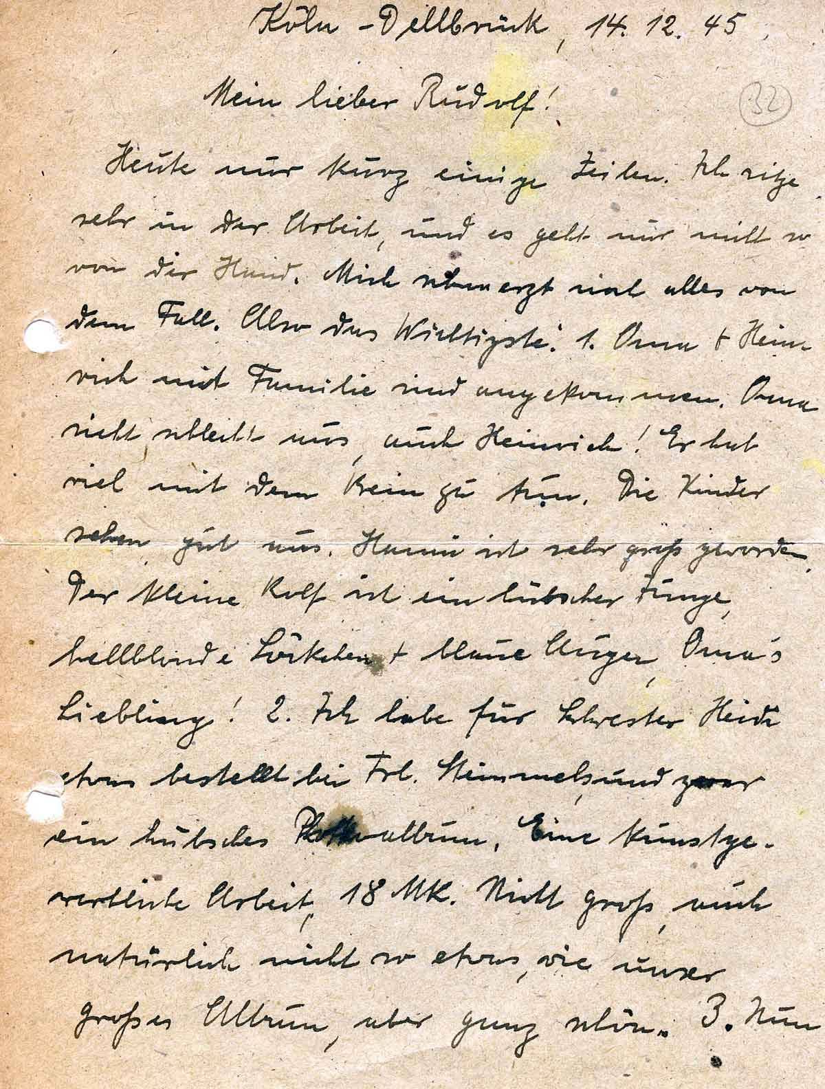 Anna Schmitz an ihren Sohn Rudolf, 14. Dezember 1945