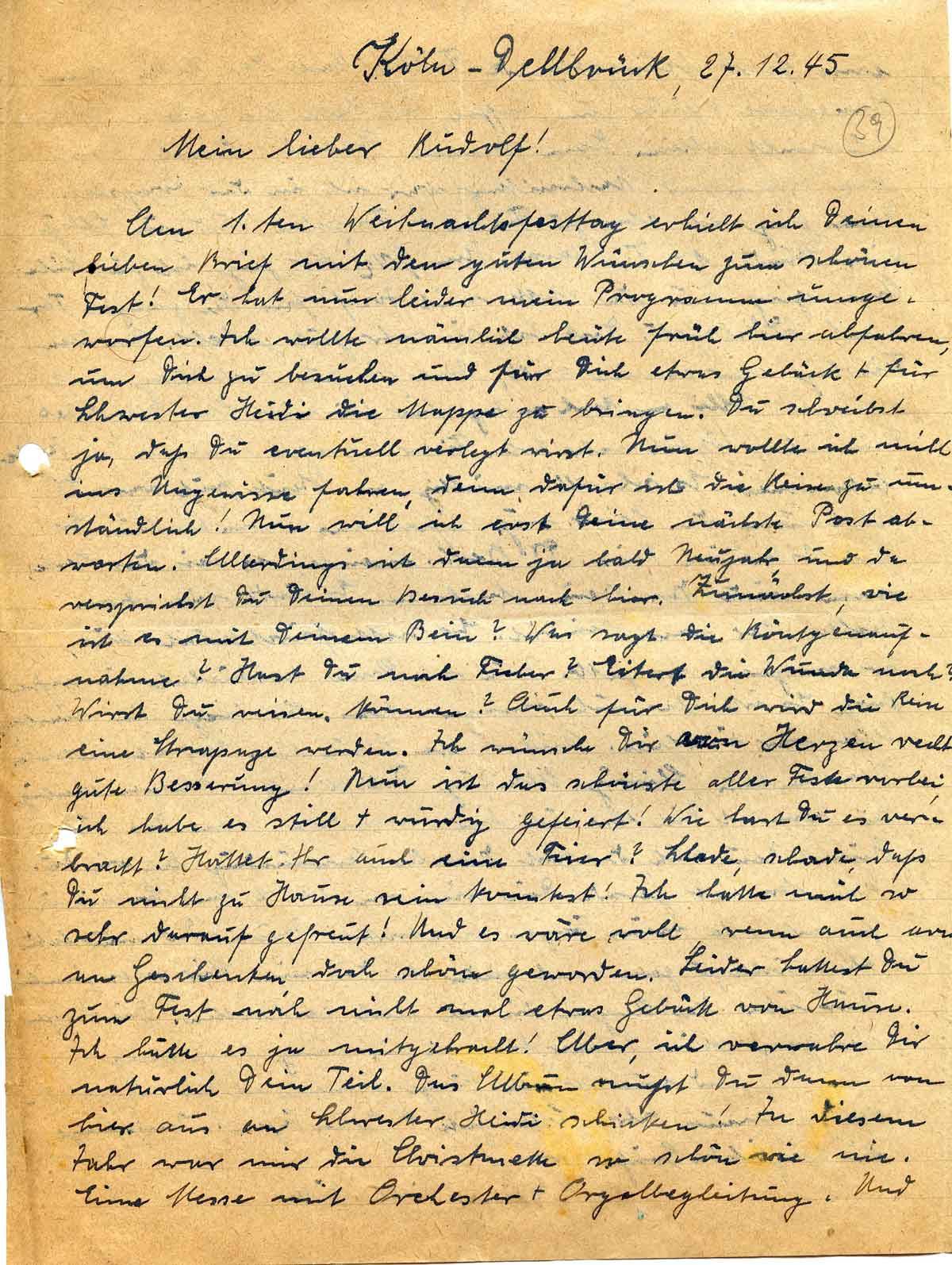 Anna Schmitz an ihren Sohn Rudolf, 27. Dezember 1945