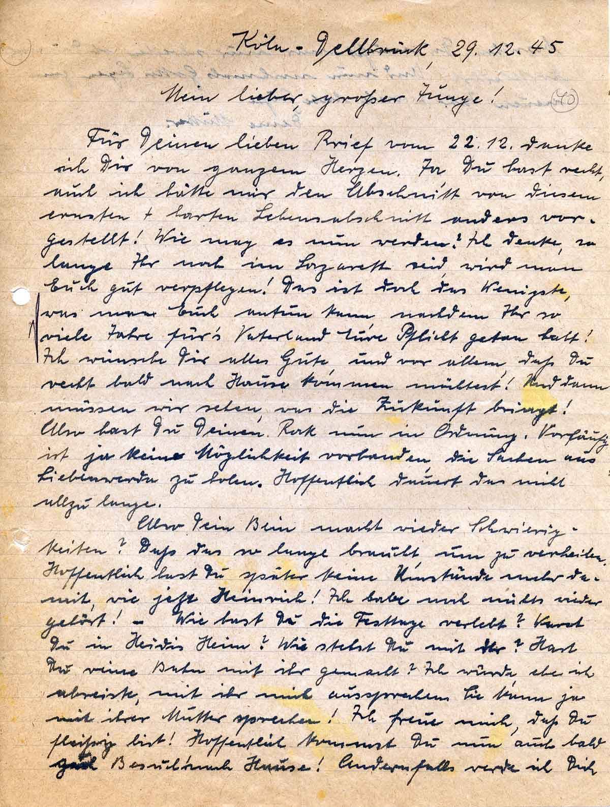 Anna Schmitz an ihren Sohn Rudolf, 29. Dezember 1945
