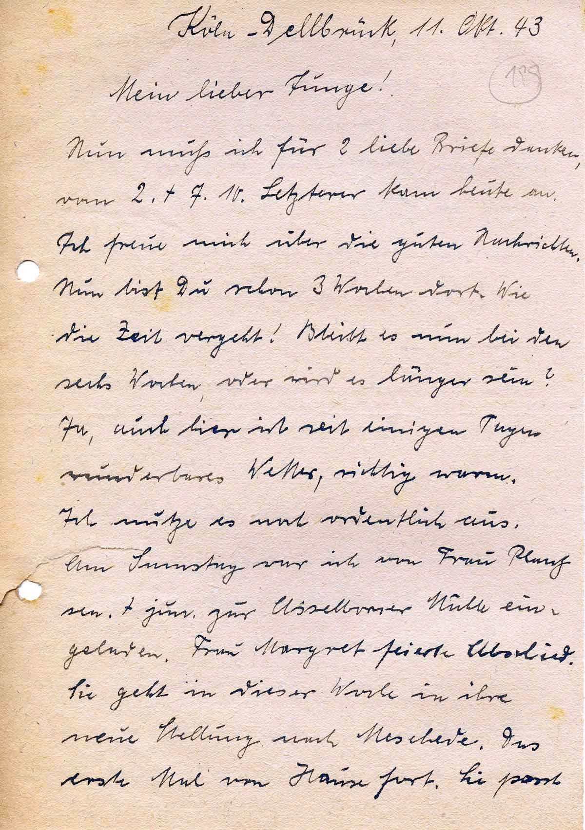 Anna Schmitz an ihren Sohn Rudolf, 11. Oktober 1943