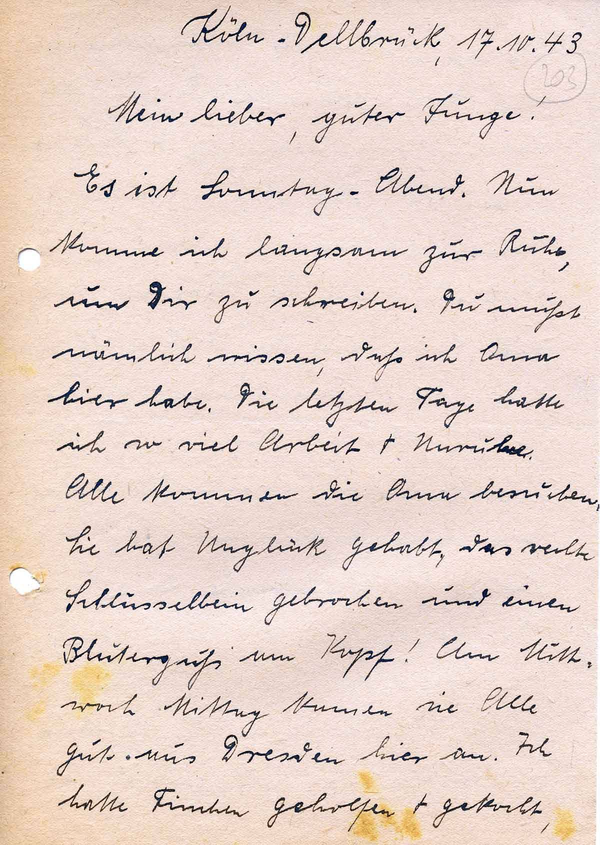 Anna Schmitz an ihren Sohn Rudolf, 17. Oktober 1943