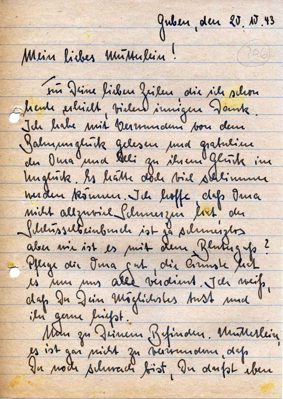 Rudolf Schmitz an Mutter Anna, 20. Oktober 1943