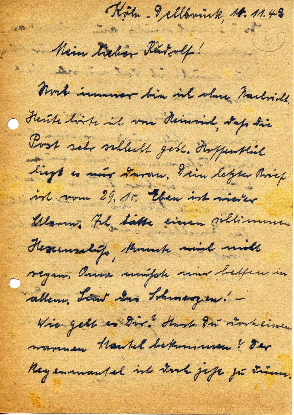 Anna Schmitz an ihren Sohn Rudolf, 11. November 1943