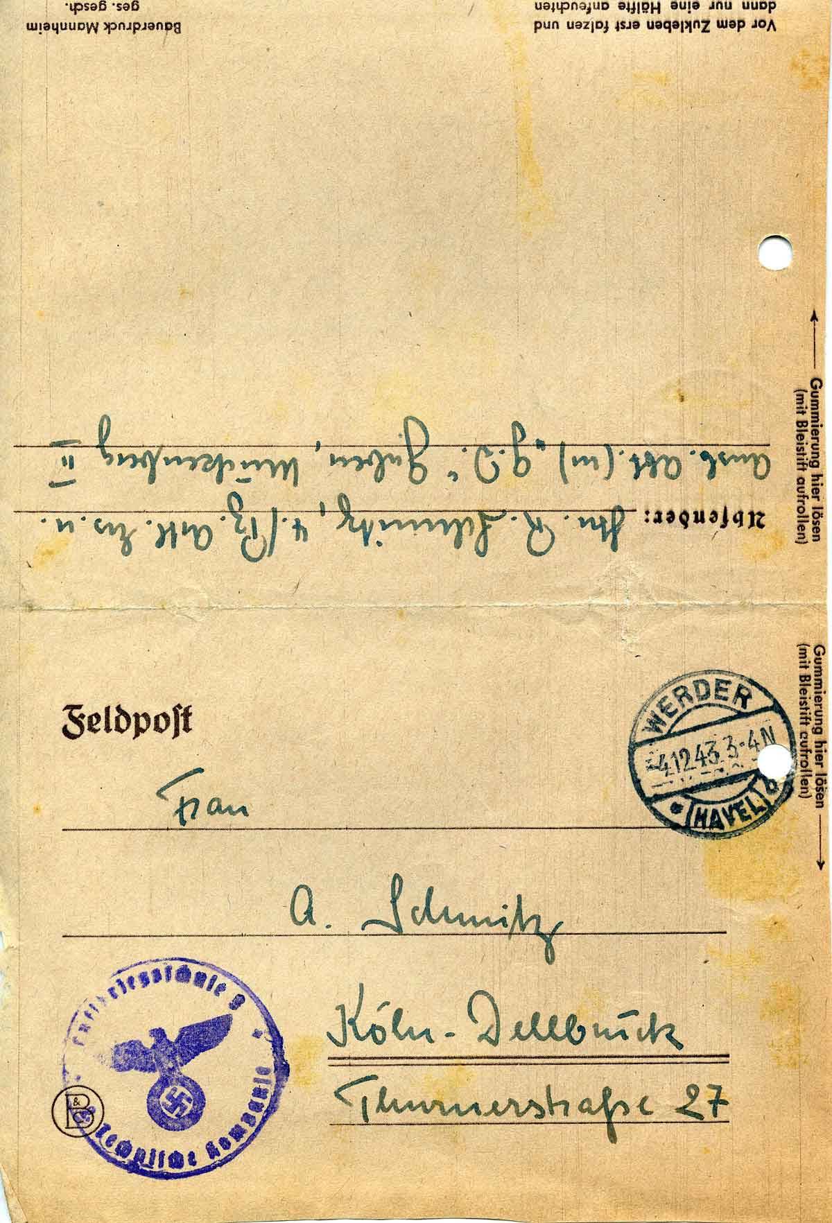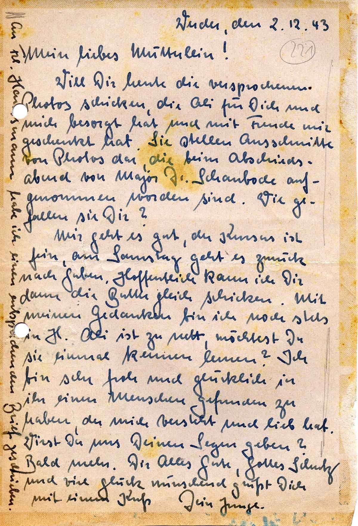 Rudolf Schmitz an Mutter Anna, 2. Dezember 1943