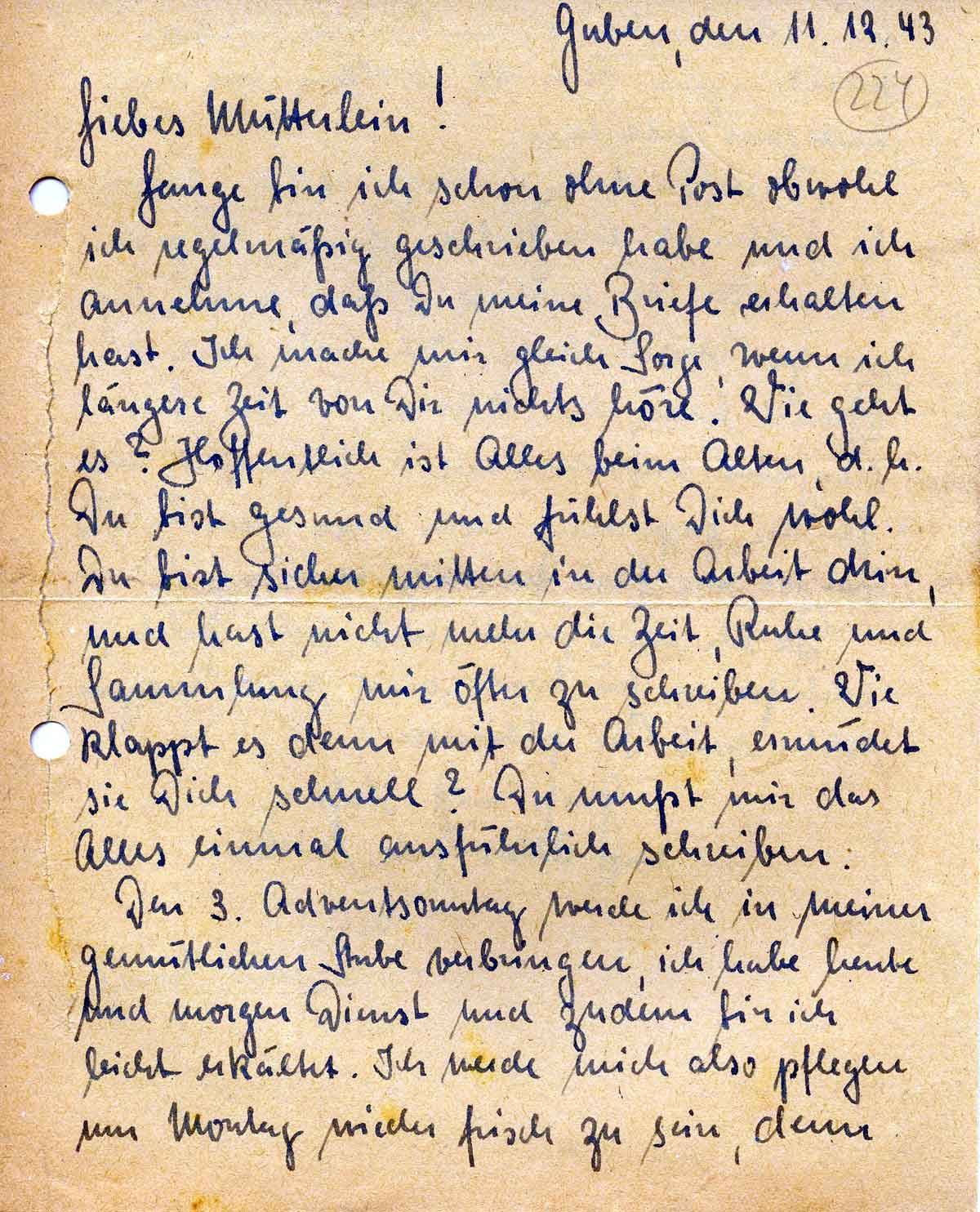 Rudolf Schmitz an Mutter Anna, 11. Dezember 1943