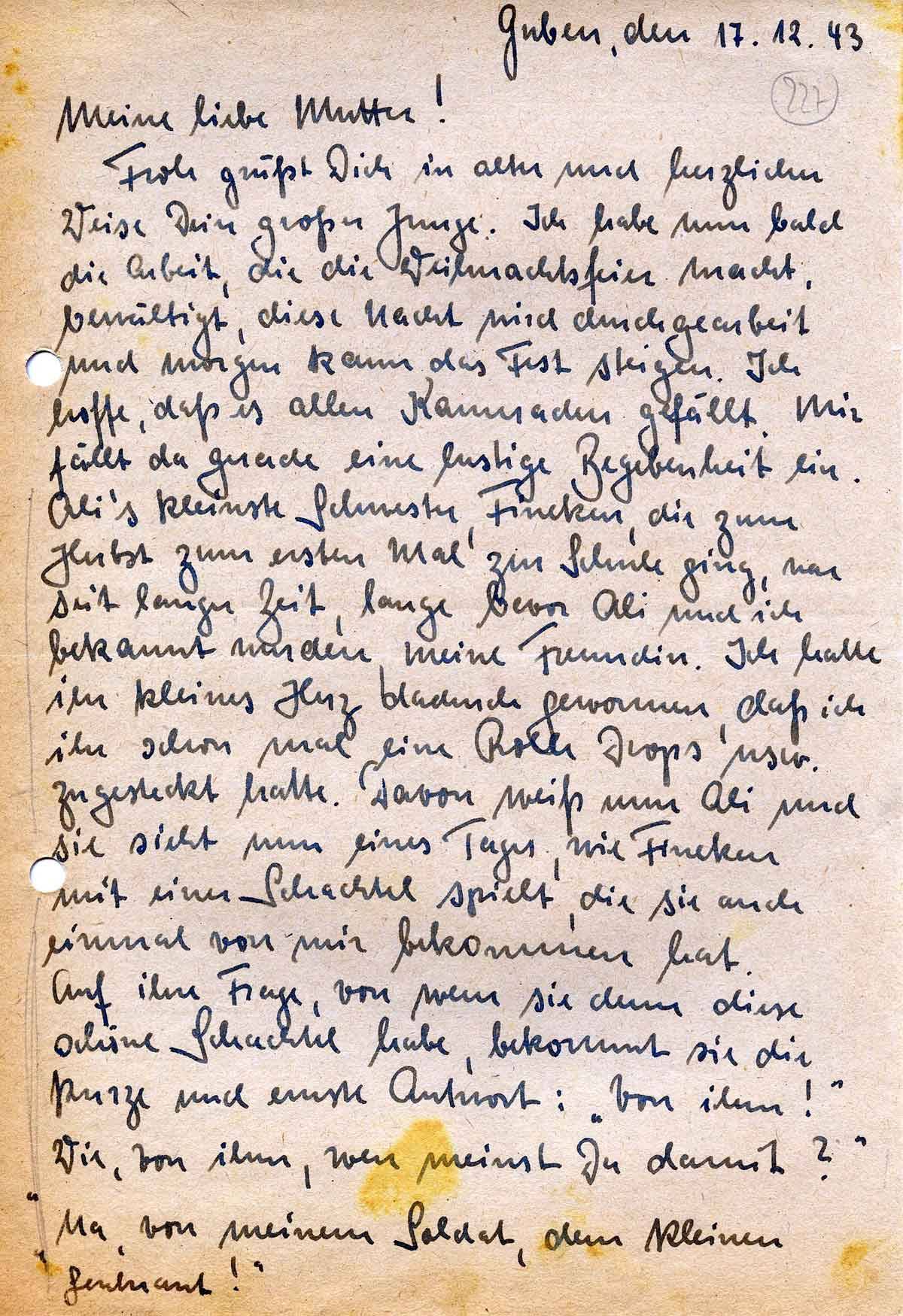 Rudolf Schmitz an Mutter Anna, 17. Dezember 1943