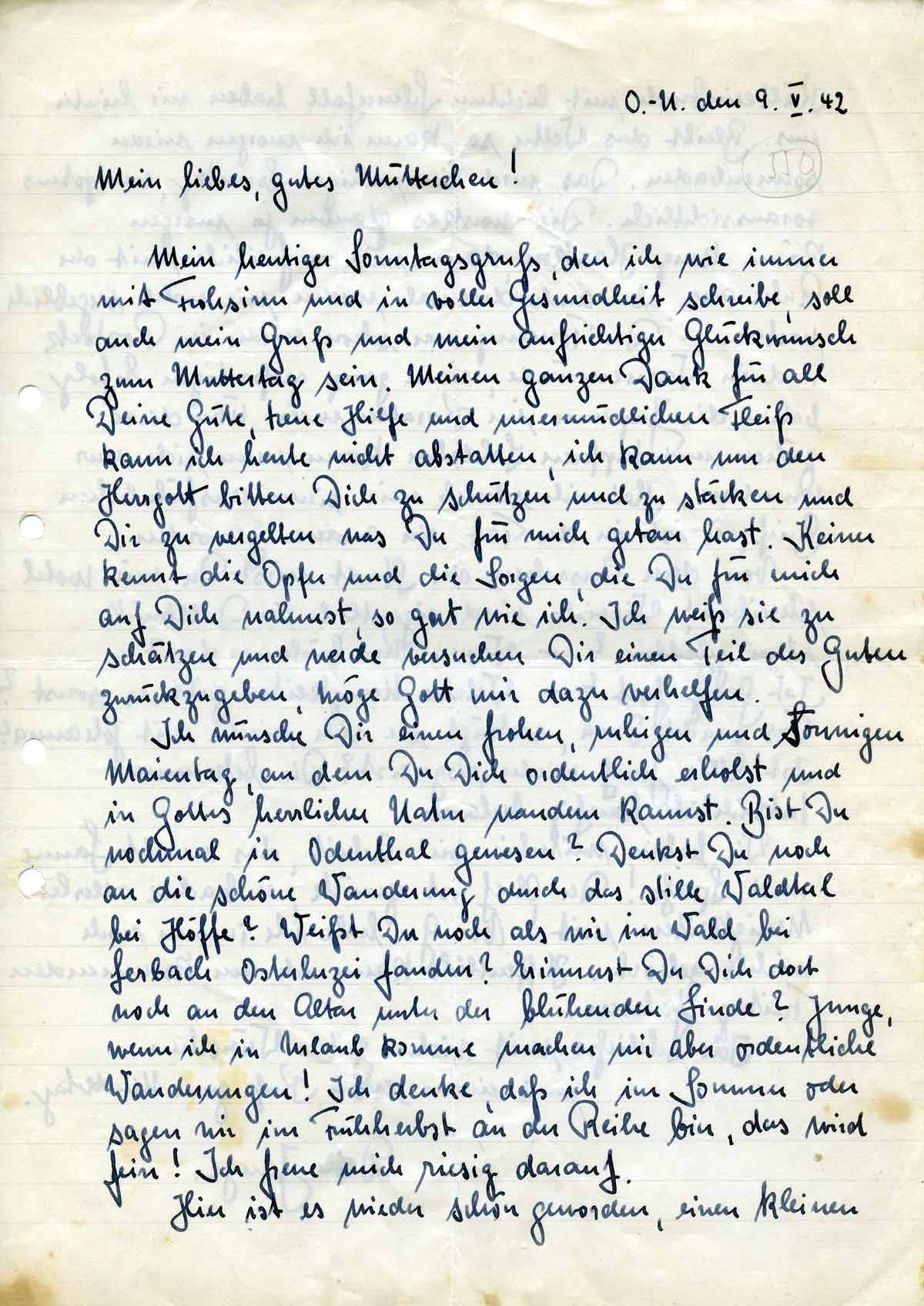 Rudolf Schmitz an Mutter Anna, 9. Mai 1942