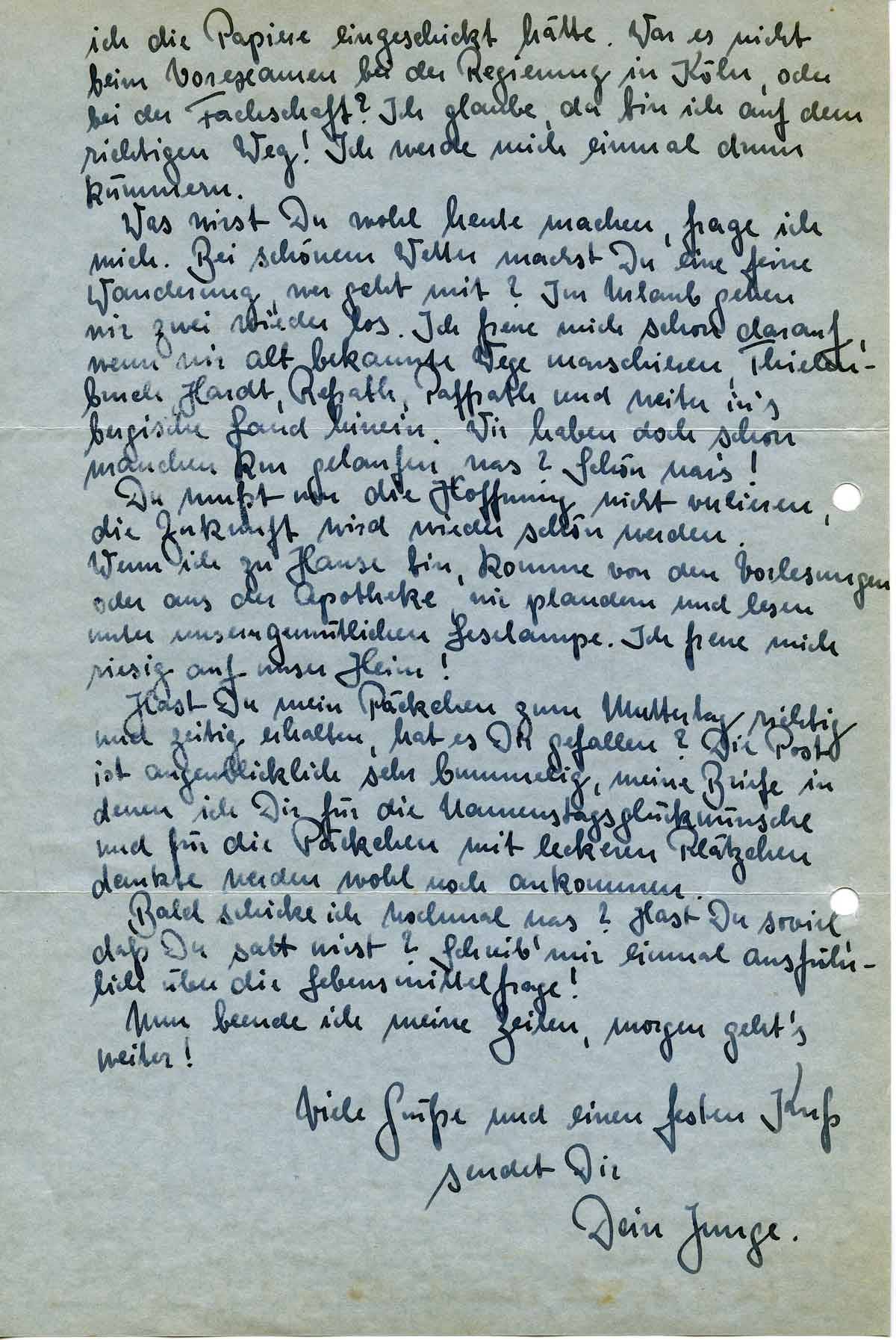 Du mußt nur die Hoffnung nicht verlieren, die Zukunft wird wieder schöne werden. Wenn ich zu Hause bin, komme von den Vorlesungen oder aus der Apotheke, wir plaudern und lesen unter unserer gemütlichen Leselampe. Ich freue mich riesig auf unser Heim!