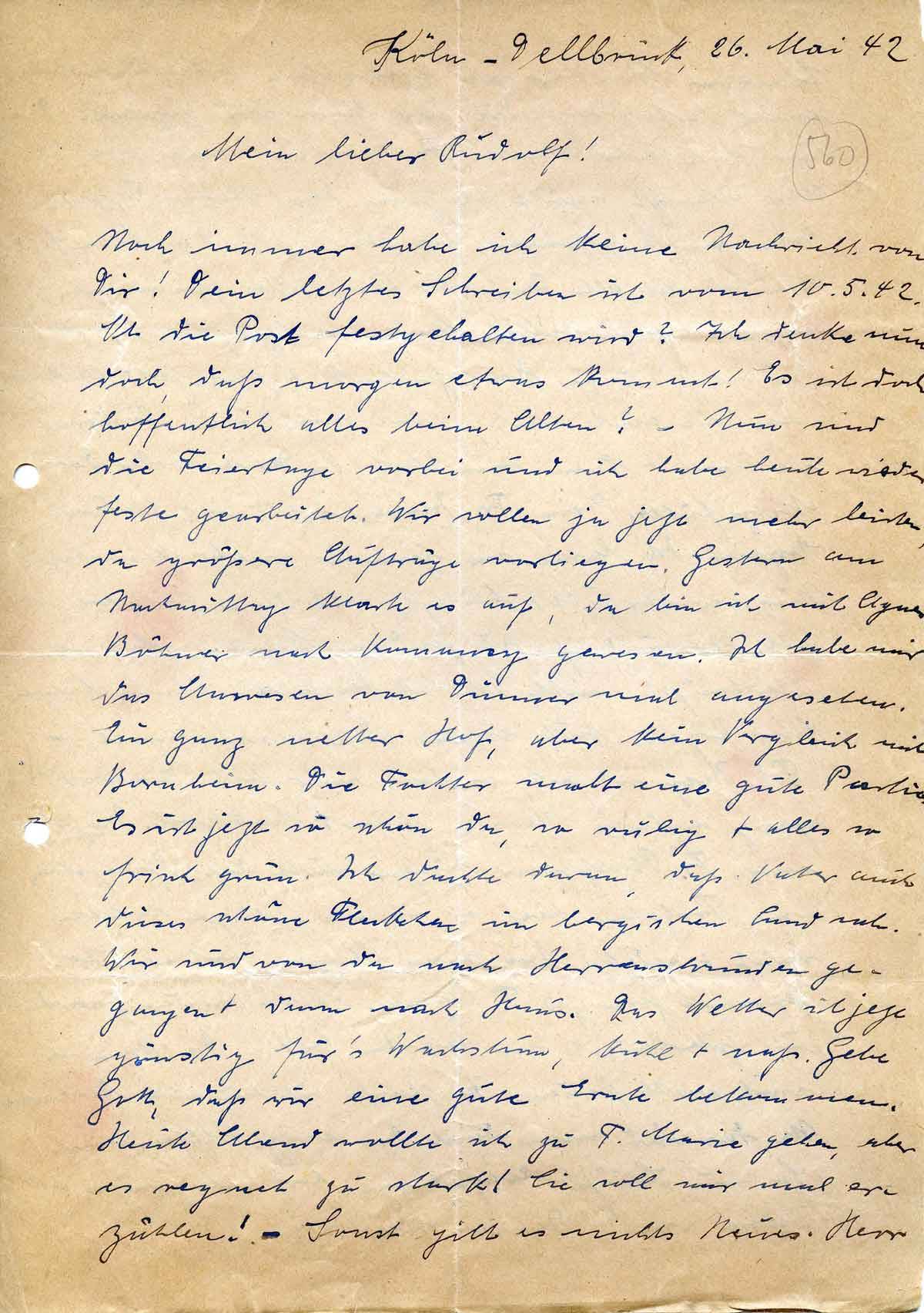 Anna Schmitz an ihren Sohn Rudolf, 26. Mai 1942