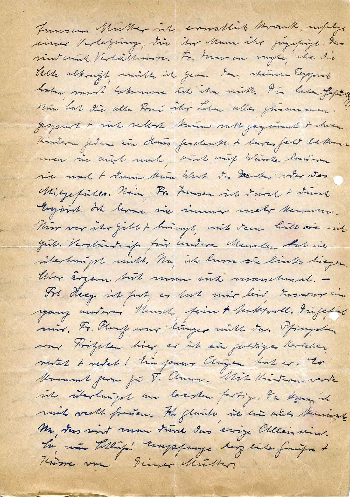 So, nun Schluß! Empfange herzliche Grüße + Küsse von Deiner Mutter.
