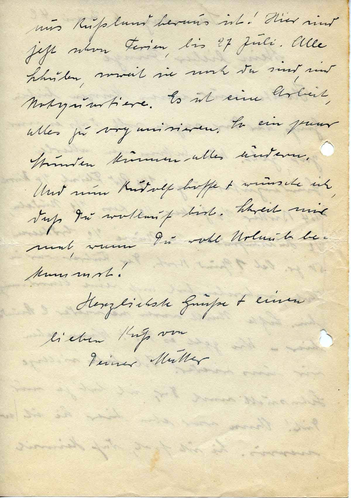 Und nun Rudolf hoffe + wünsche ich, daß Du wohlauf bist. Schreib mir mal, wann Du wohl Urlaub bekommst!