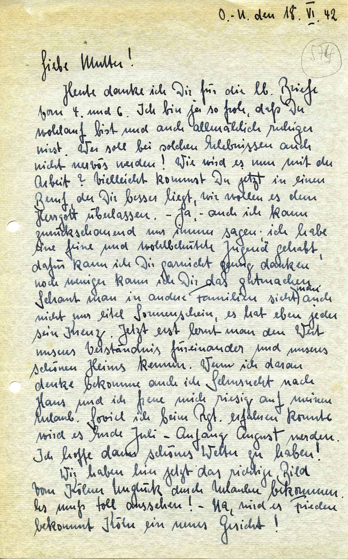 Rudolf Schmitz an Mutter Anna, 18. Juni 1942