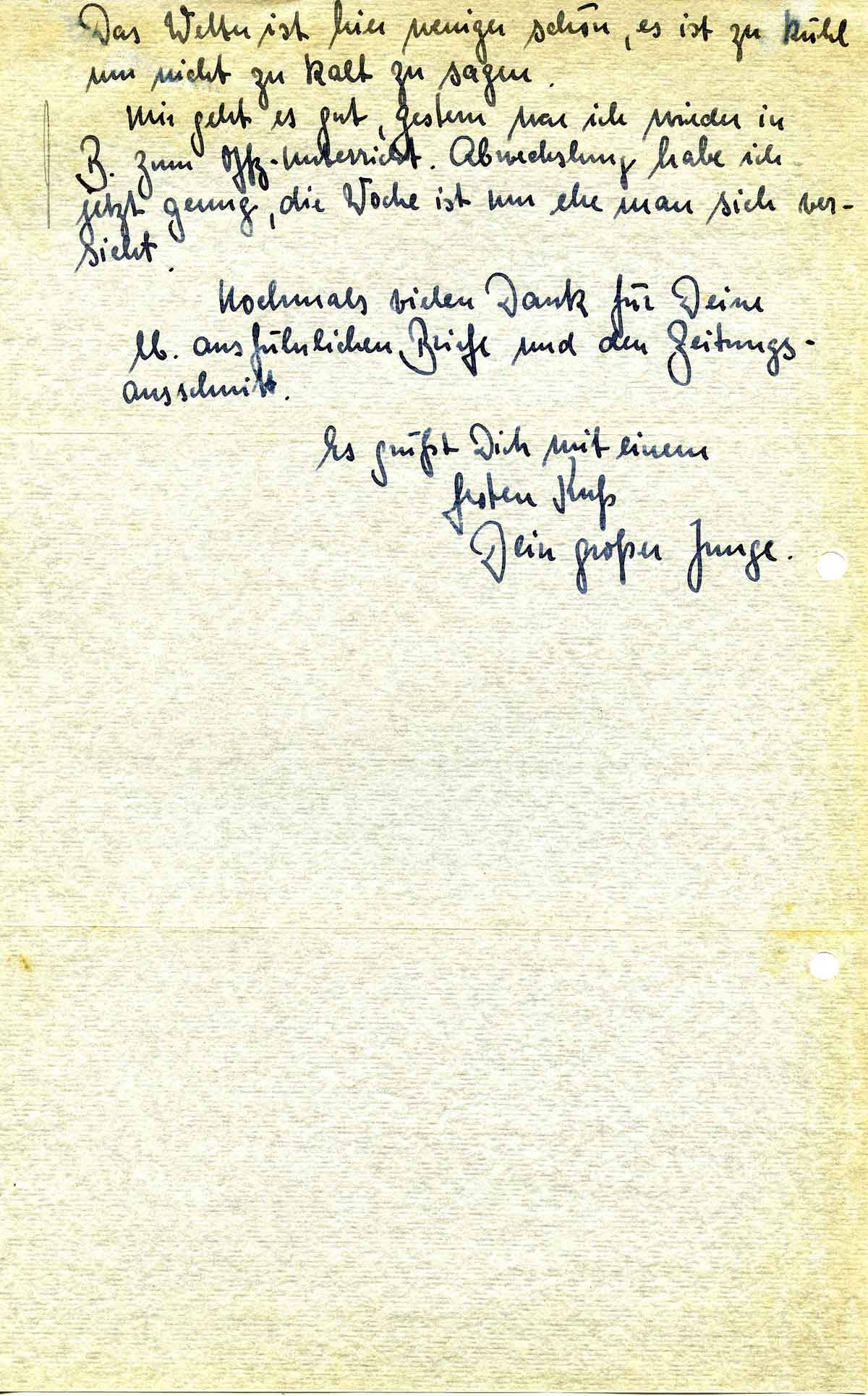 Nochmals vielen Dank für Deine lb. ausführlichen Briefe und den Zeitungsausschnitt.