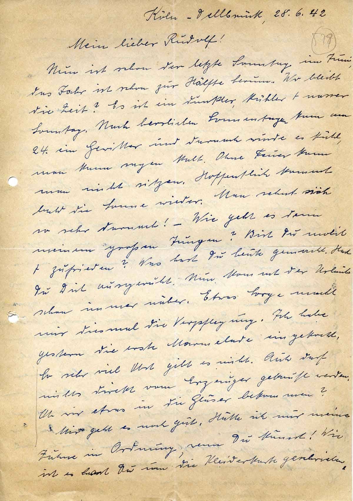 Anna Schmitz an ihren Sohn Rudolf, 28. Juni 1942