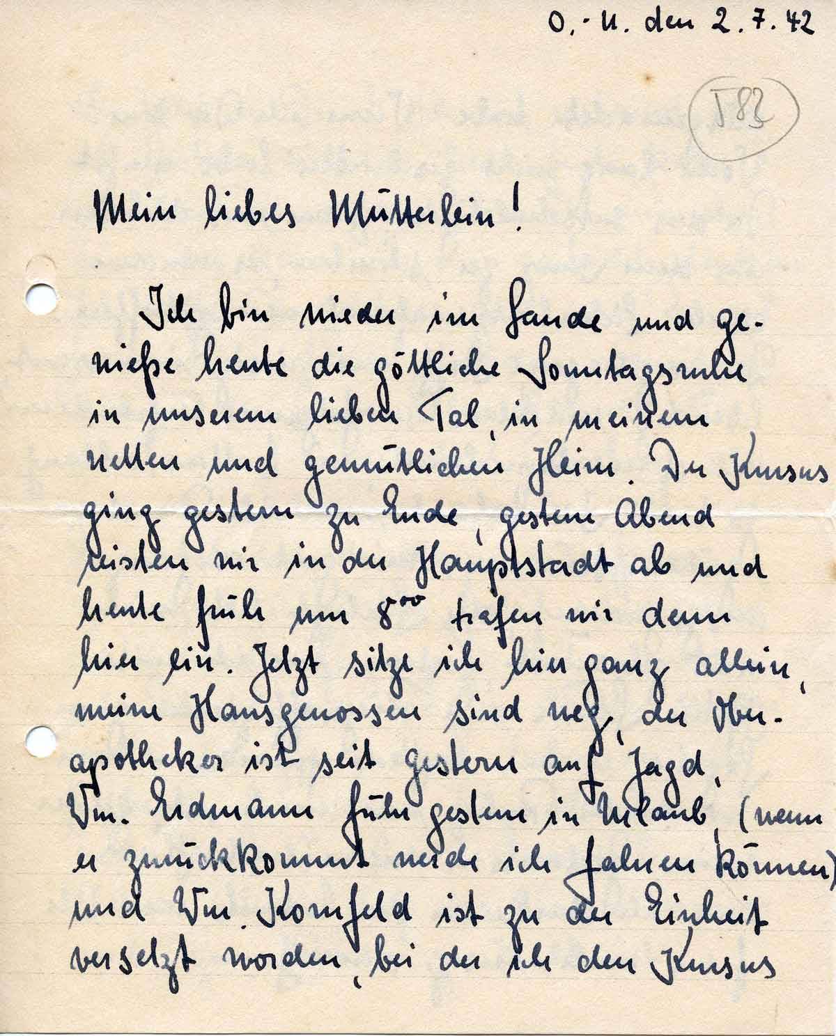 Rudolf Schmitz an Mutter Anna, 2. Juli 1942