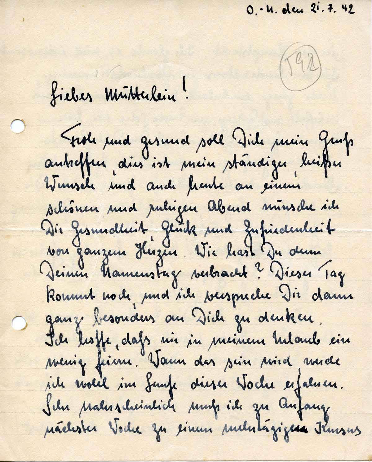 Rudolf Schmitz an Mutter Anna, 21. Juli 1942