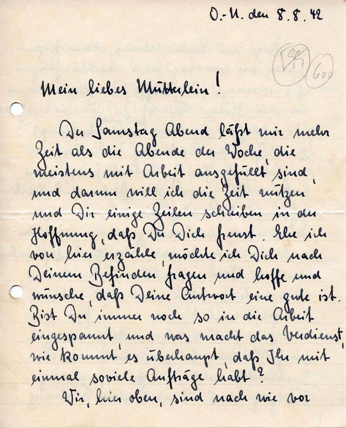 Rudolf Schmitz an Mutter Anna, 8. August 1942