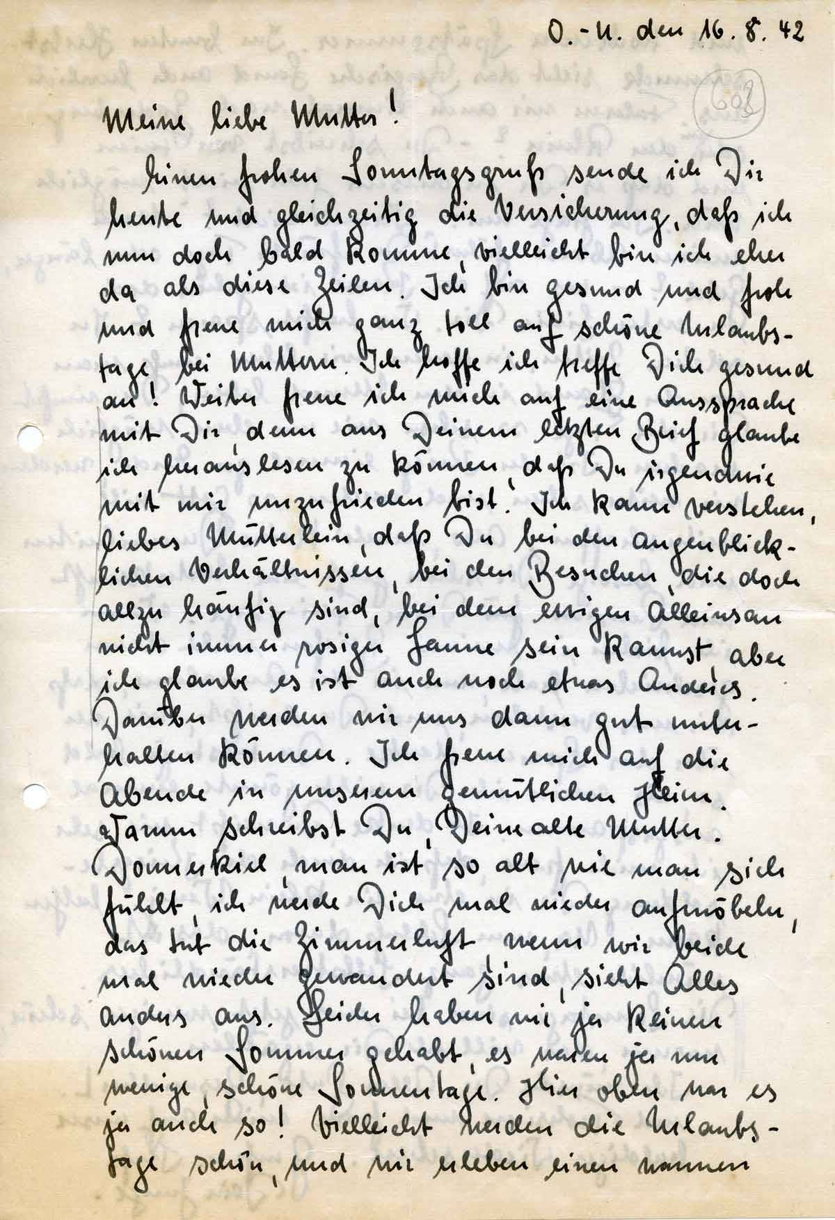 Rudolf Schmitz an Mutter Anna, 16. August 1942