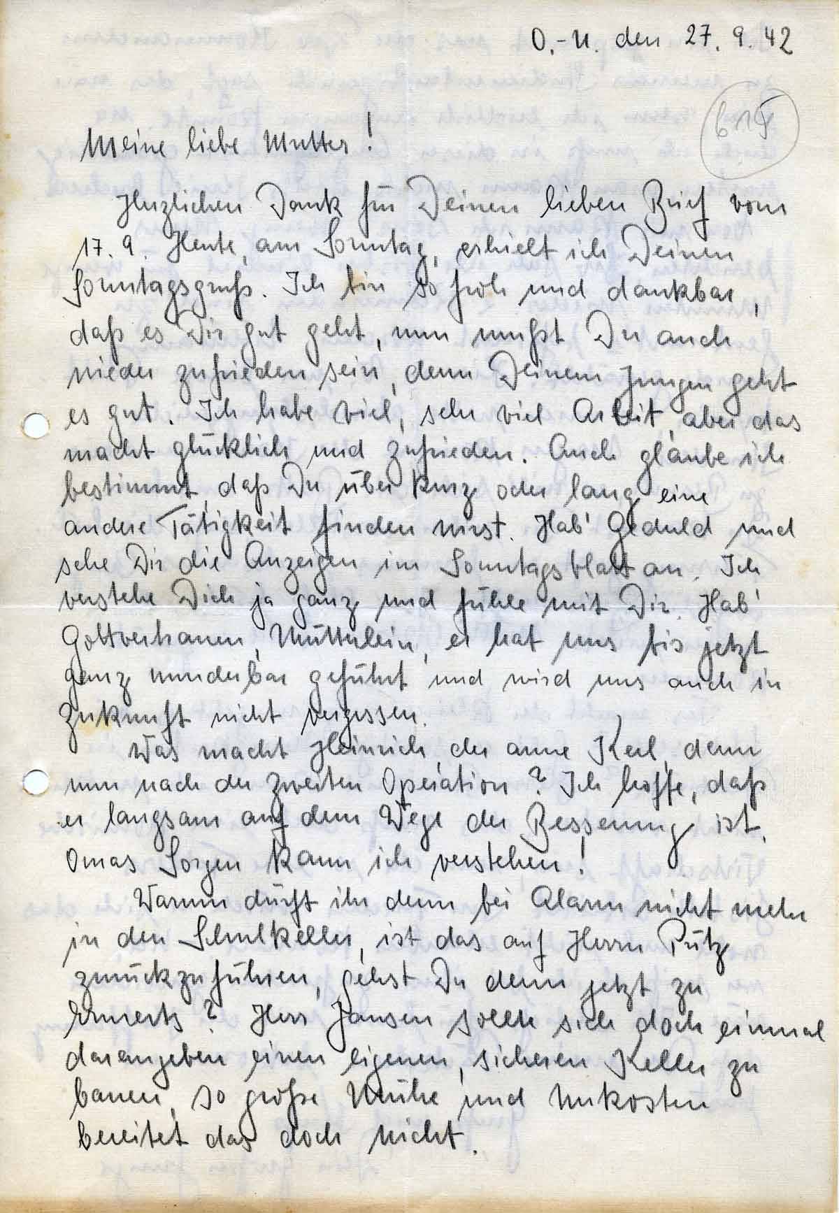 Rudolf Schmitz an Mutter Anna, 27. September 1942