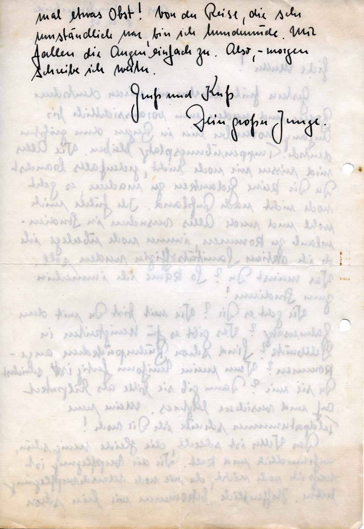 Wie geht es Dir? Wie weit bist Du mit dem Zahnersatz? Was gibt es für Neuigkeiten in Dellbrück? Sind schon Bücherpäckchen angekommen? Wenn meine Uniform fertig ist, schickst Du sie mir? Dann gib sie bitte als Eilpaket auf und versichere letzteres. Meine neue Feldpostnummer schreibe ich Dir noch!