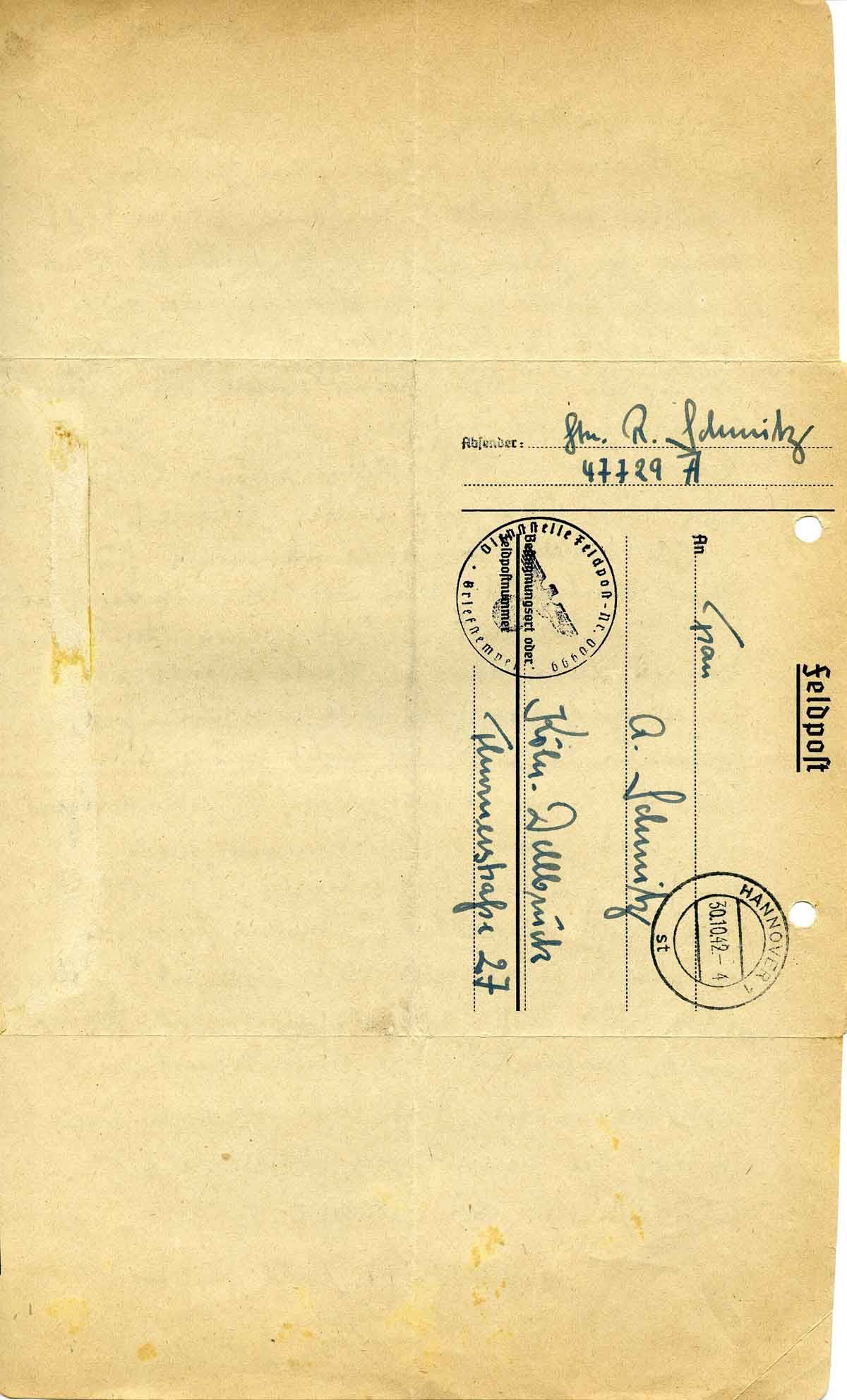 Rudolf Schmitz an Mutter Anna, 29. Oktober 1942