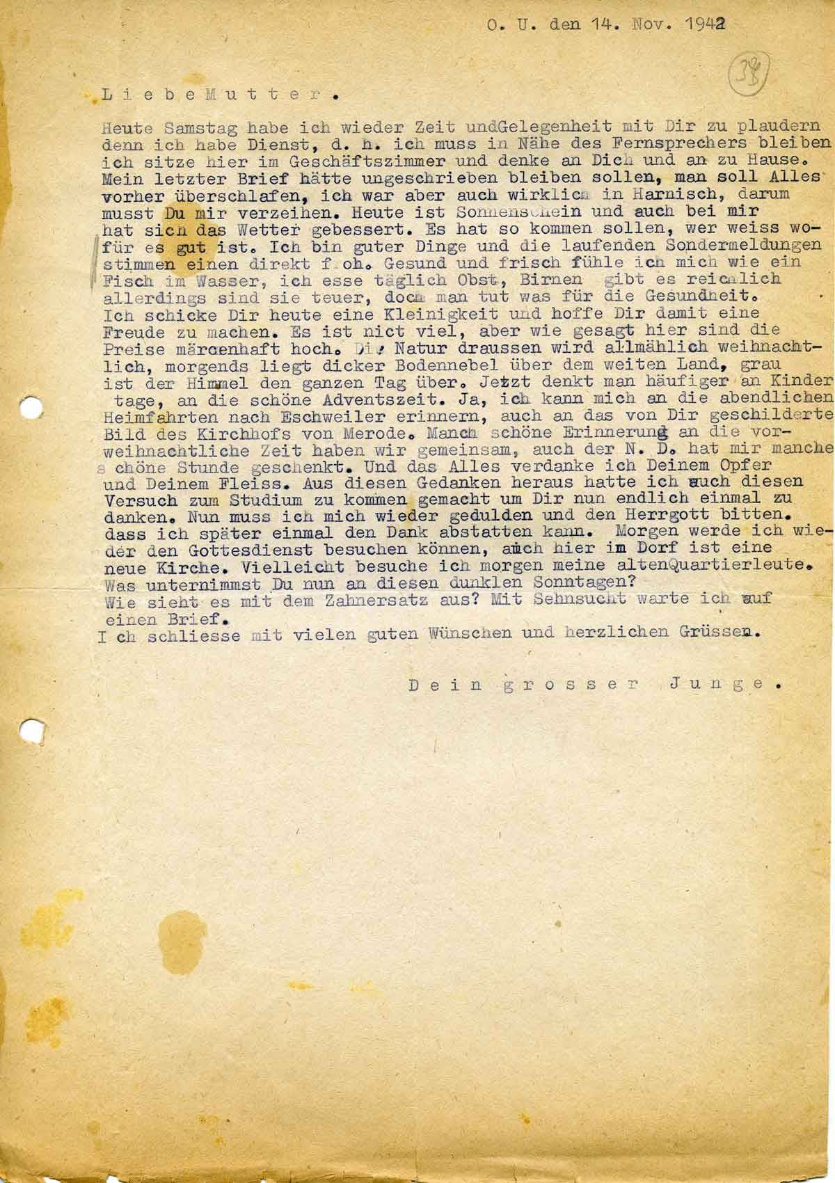 Rudolf Schmitz an Mutter Anna, 14. November 1942