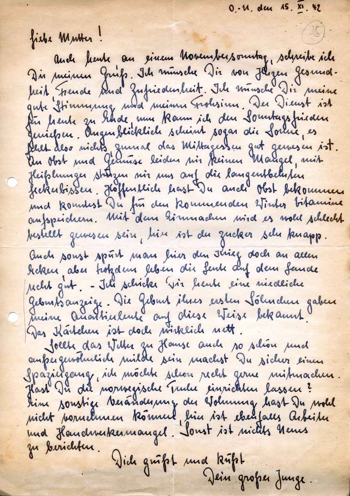Rudolf Schmitz an Mutter Anna, 15. November 1942