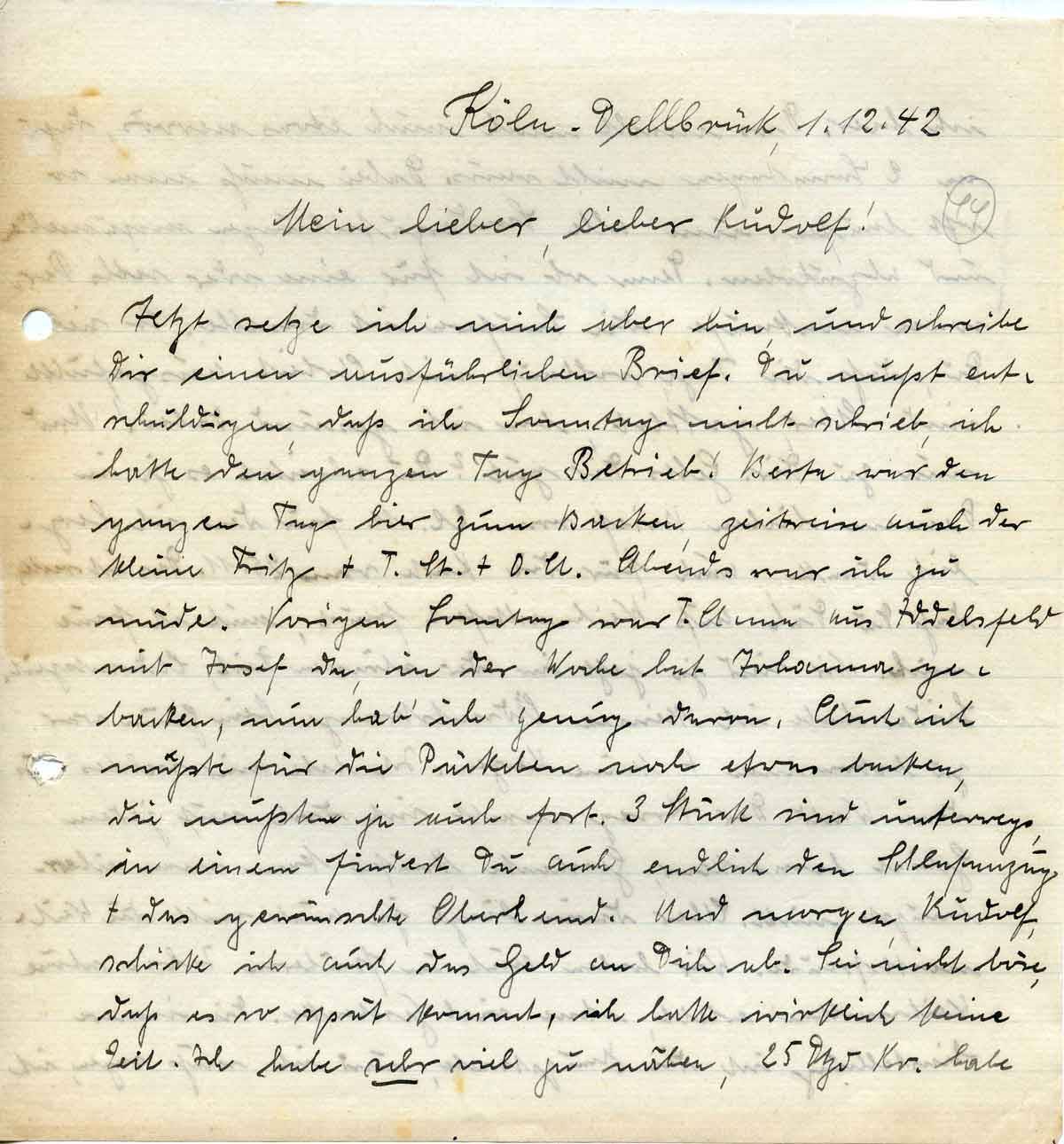 Anna Schmitz an ihren Sohn Rudolf, 1. Dezember 1942