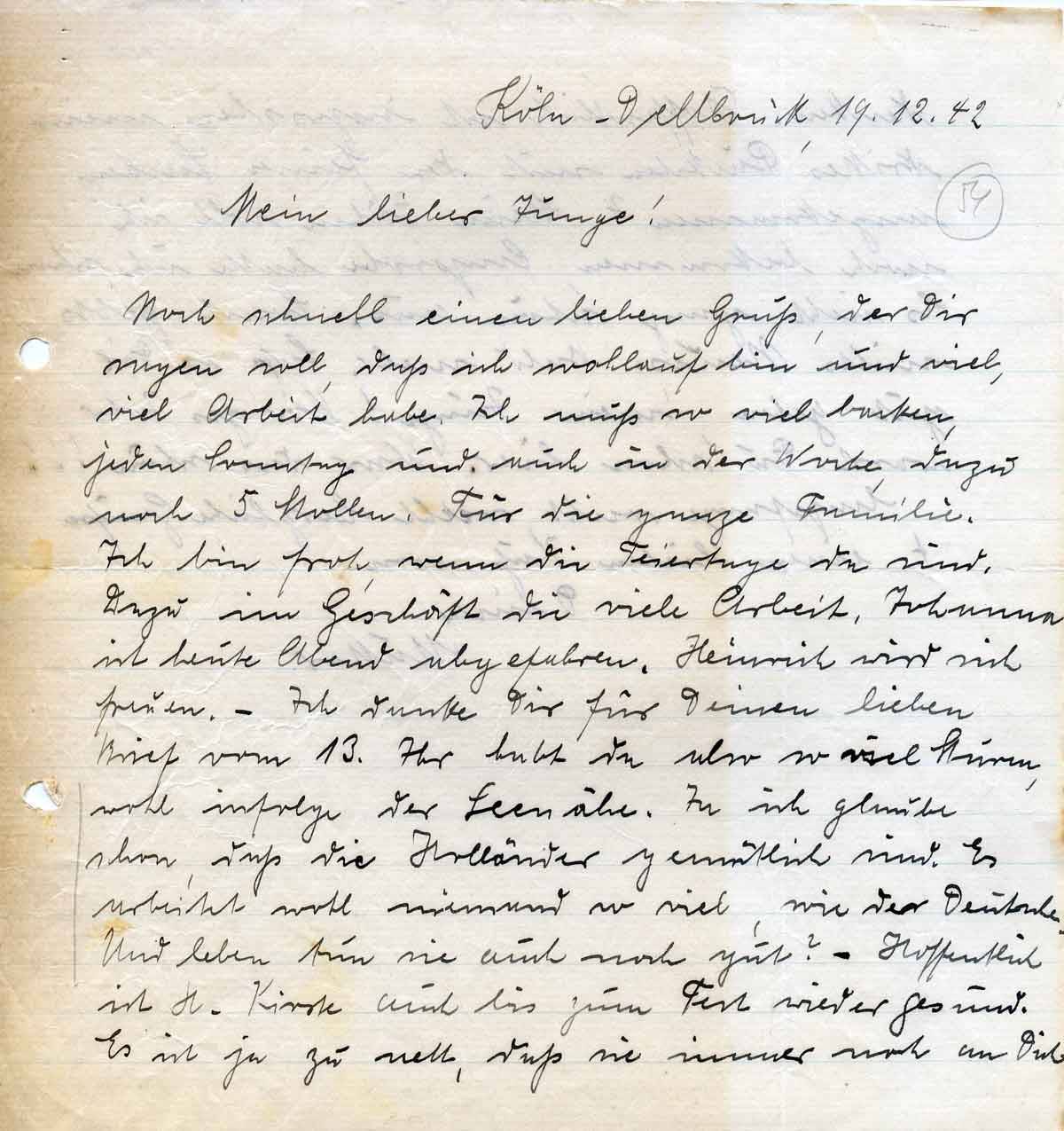 Anna Schmitz an ihren Sohn Rudolf, 19. Dezember 1942