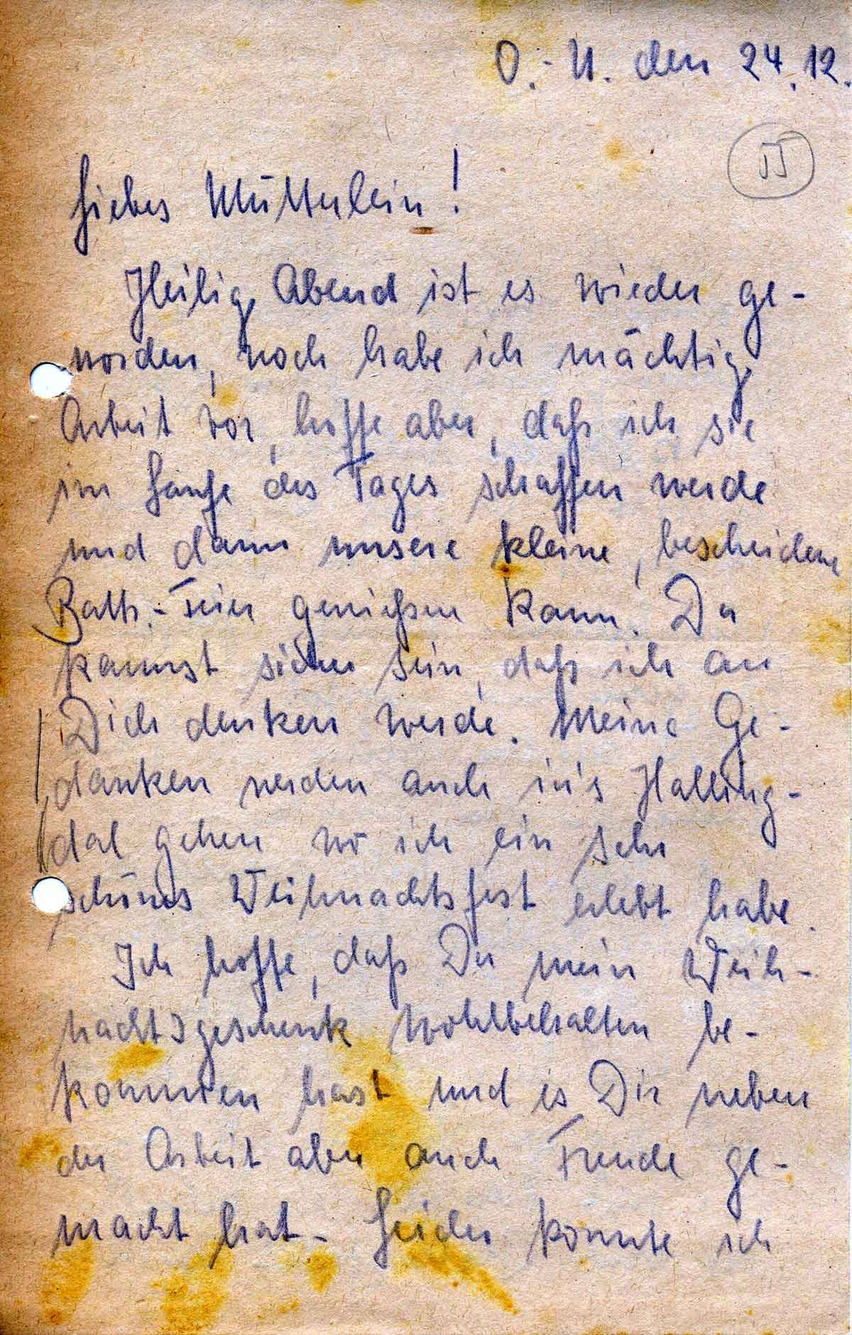 Rudolf Schmitz an Mutter Anna, 24. Dezember 1942