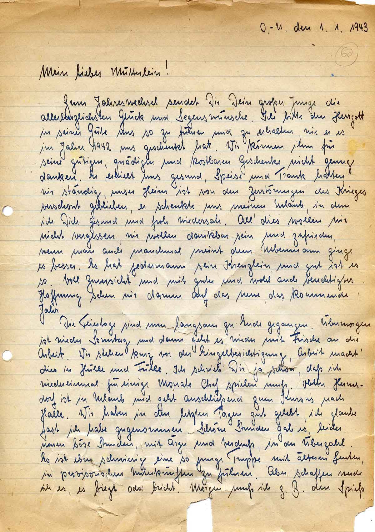 Rudolf Schmitz an Mutter Anna, 1. Januar 1943