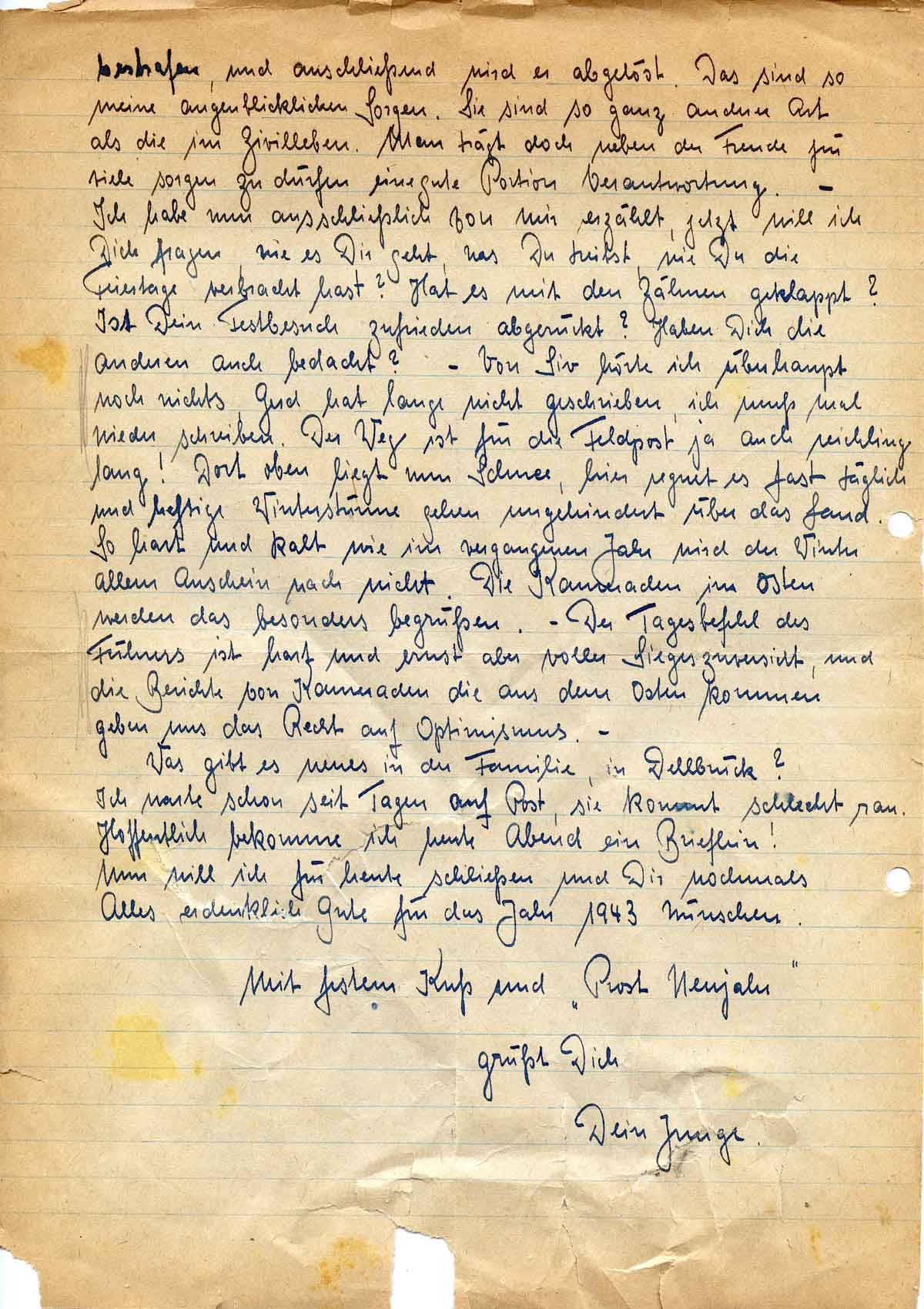 Nun will ich für heute schließen und Dir nochmals Alles erdenklich Gute für das Jahr 1943 wünschen.