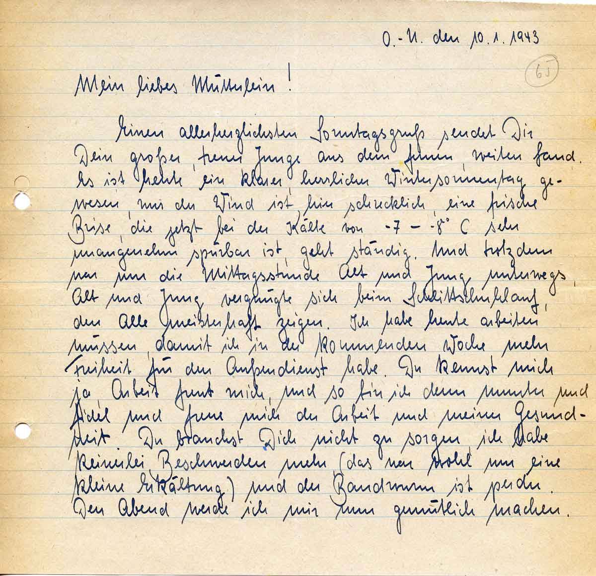 Rudolf Schmitz an Mutter Anna, 10. Januar 1943